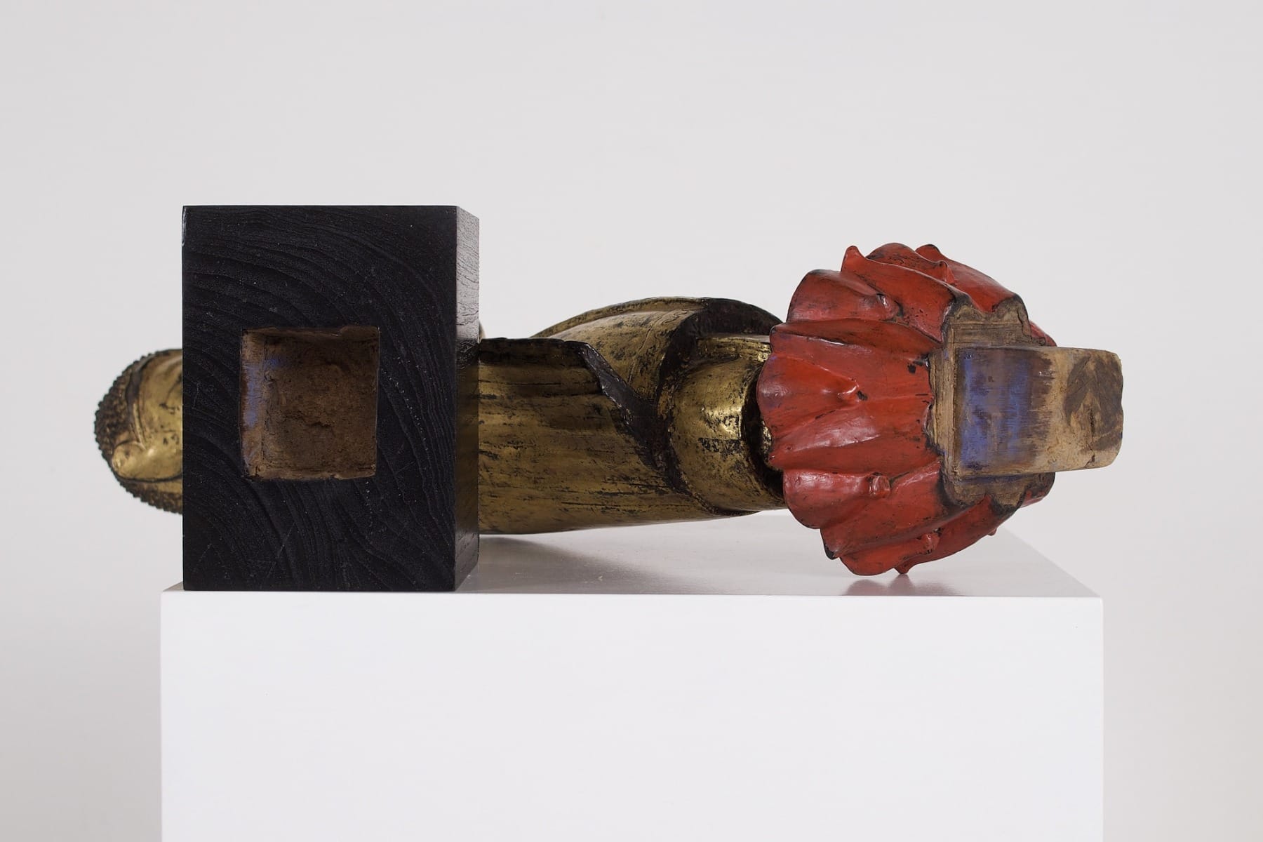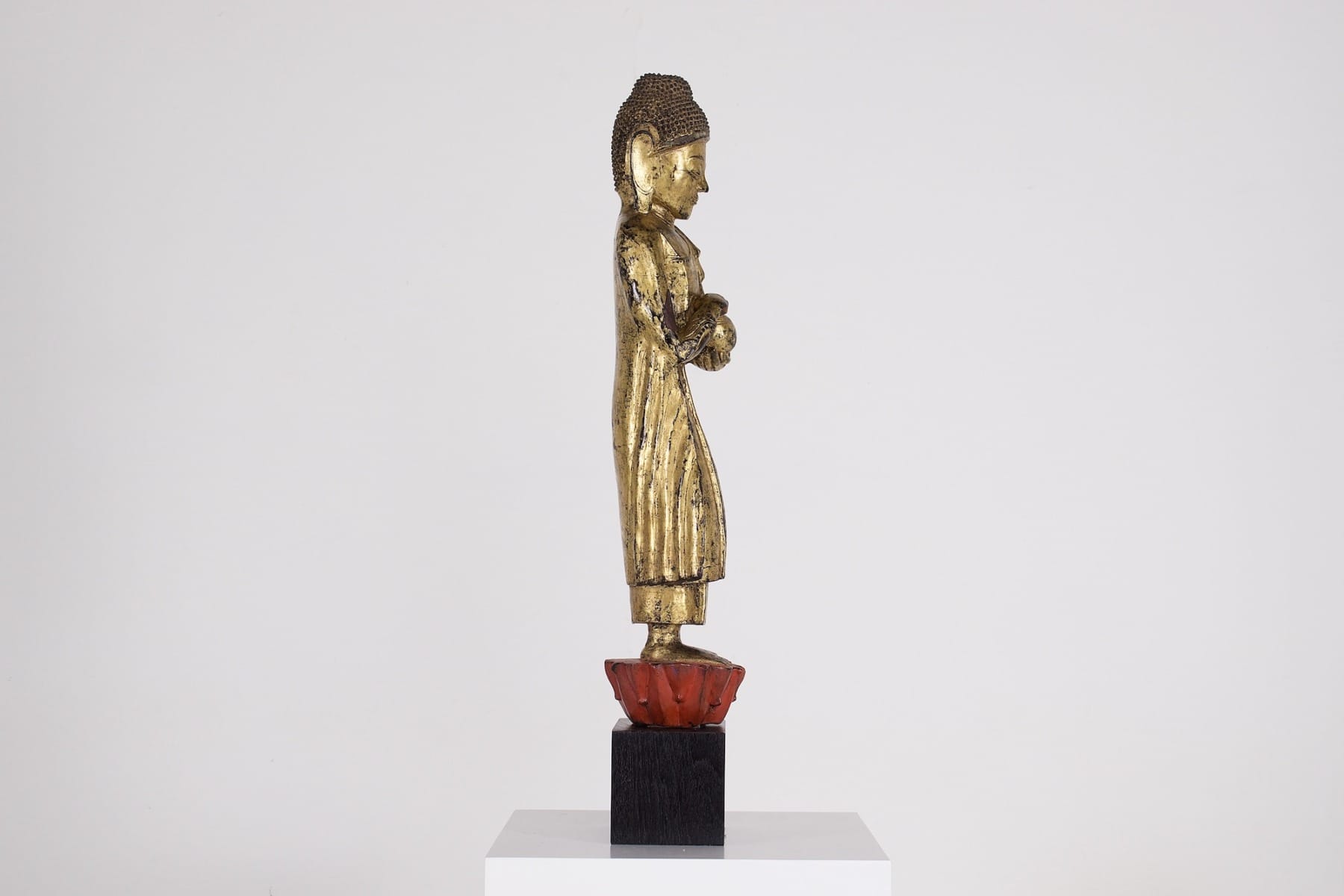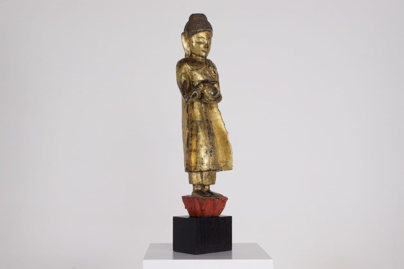 - Birma, Mandalay-Periode, Ende des 19. Jahrhunderts. Vergoldetes Holz und Trockenlack. Reste von Glimmerband um das Gesicht.