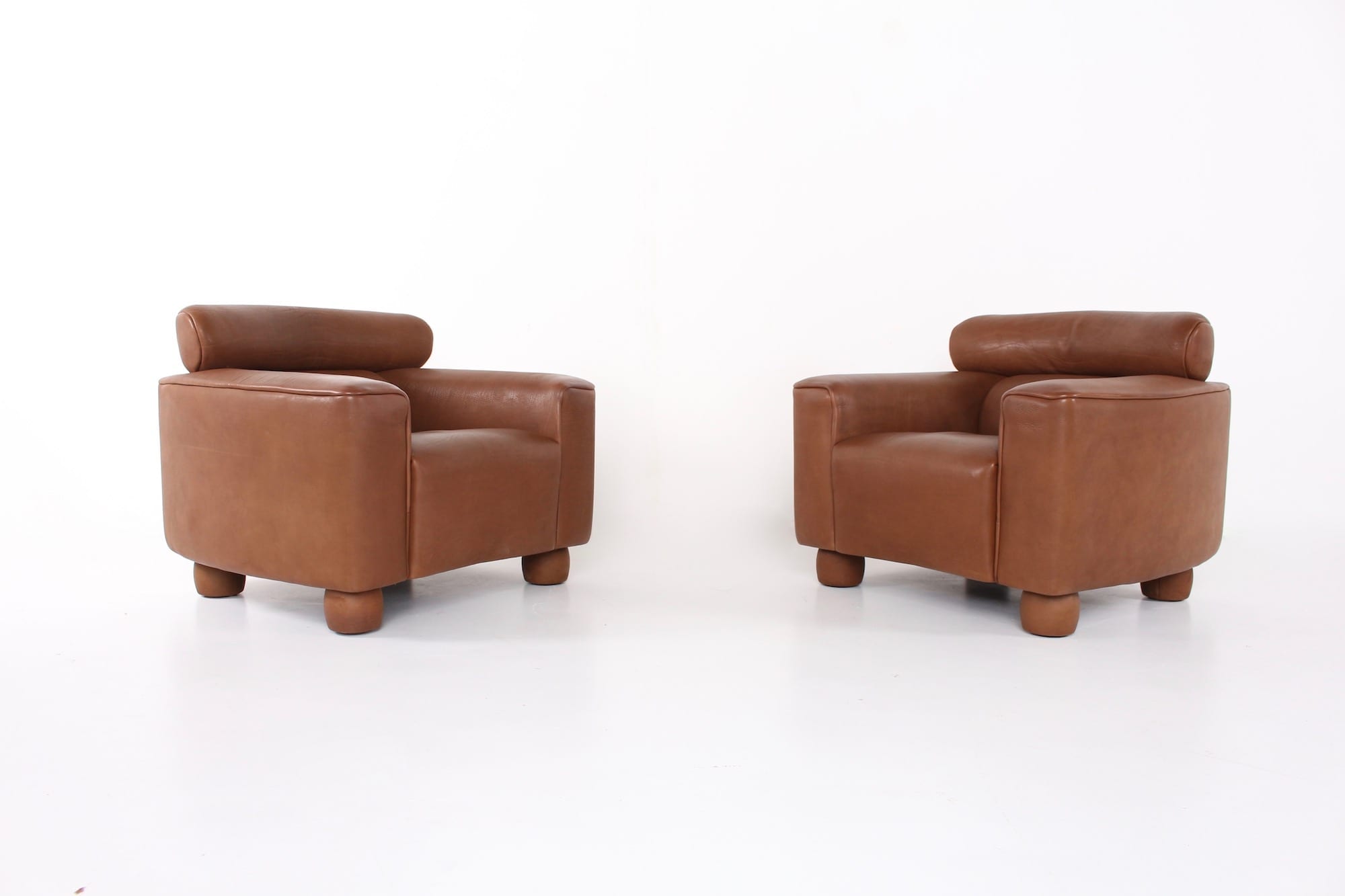 - de Sede Switzerland Editor, Sessel aus cognacfarbenem Büffelleder, Originalausgabe aus den 1970er Jahren.