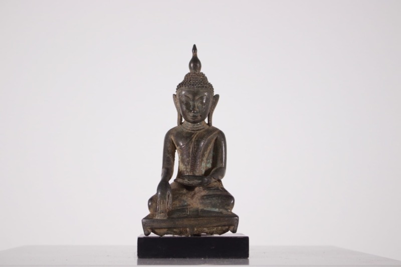 - Antikes Bronzebild von Buddha Shakyamuni in Bhumisparsha Mudra, Burma, 16./17. Jahrhundert.
