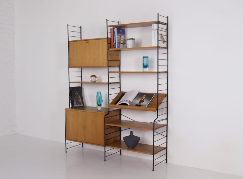- Modulares Wandregal, herausgegeben von W.H.B um 1970, bestehend aus einem Kasten mit Türen, einem weiteren Kasten mit Klappe (oben) und einem Zeitschriftenhalter.