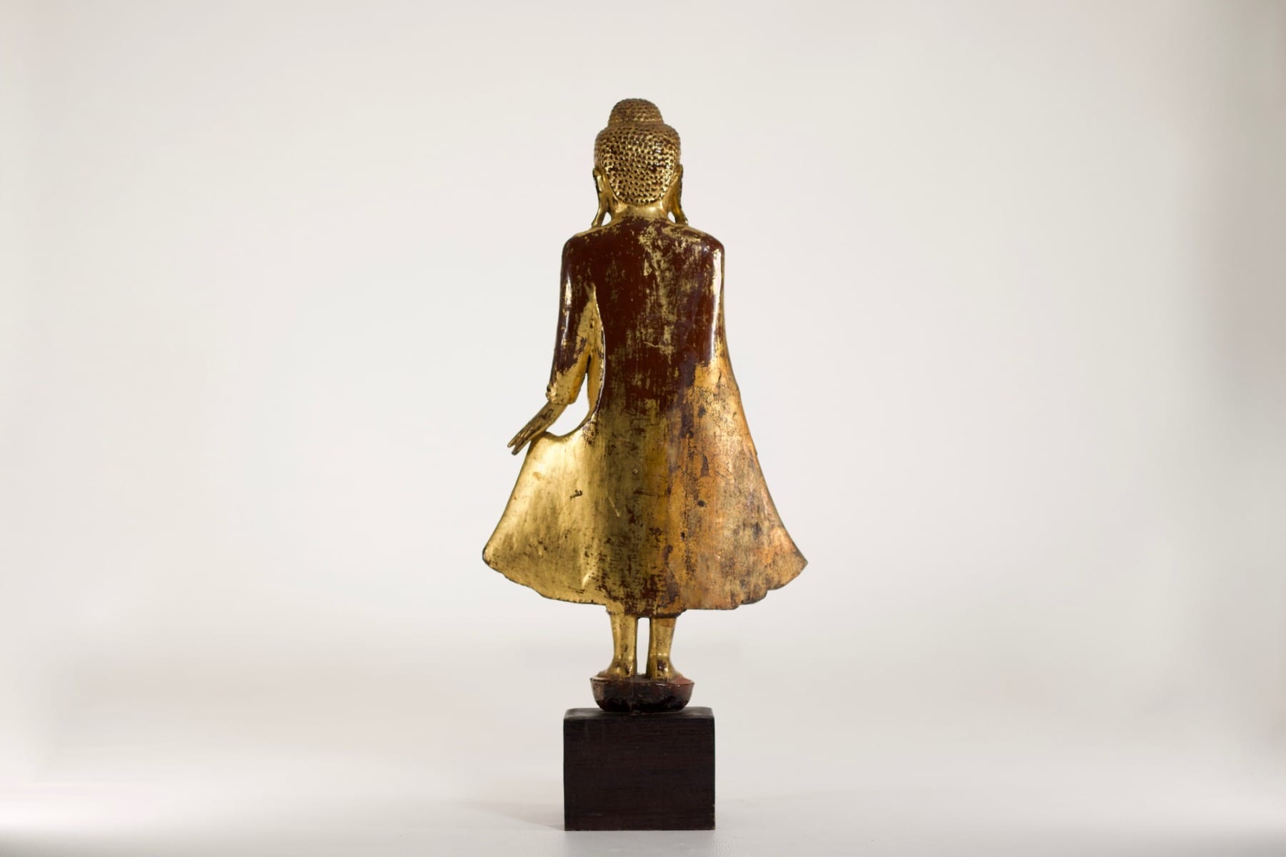 Stehende Birmanische Buddha-Statue – Vergoldetes Holz Mandalay