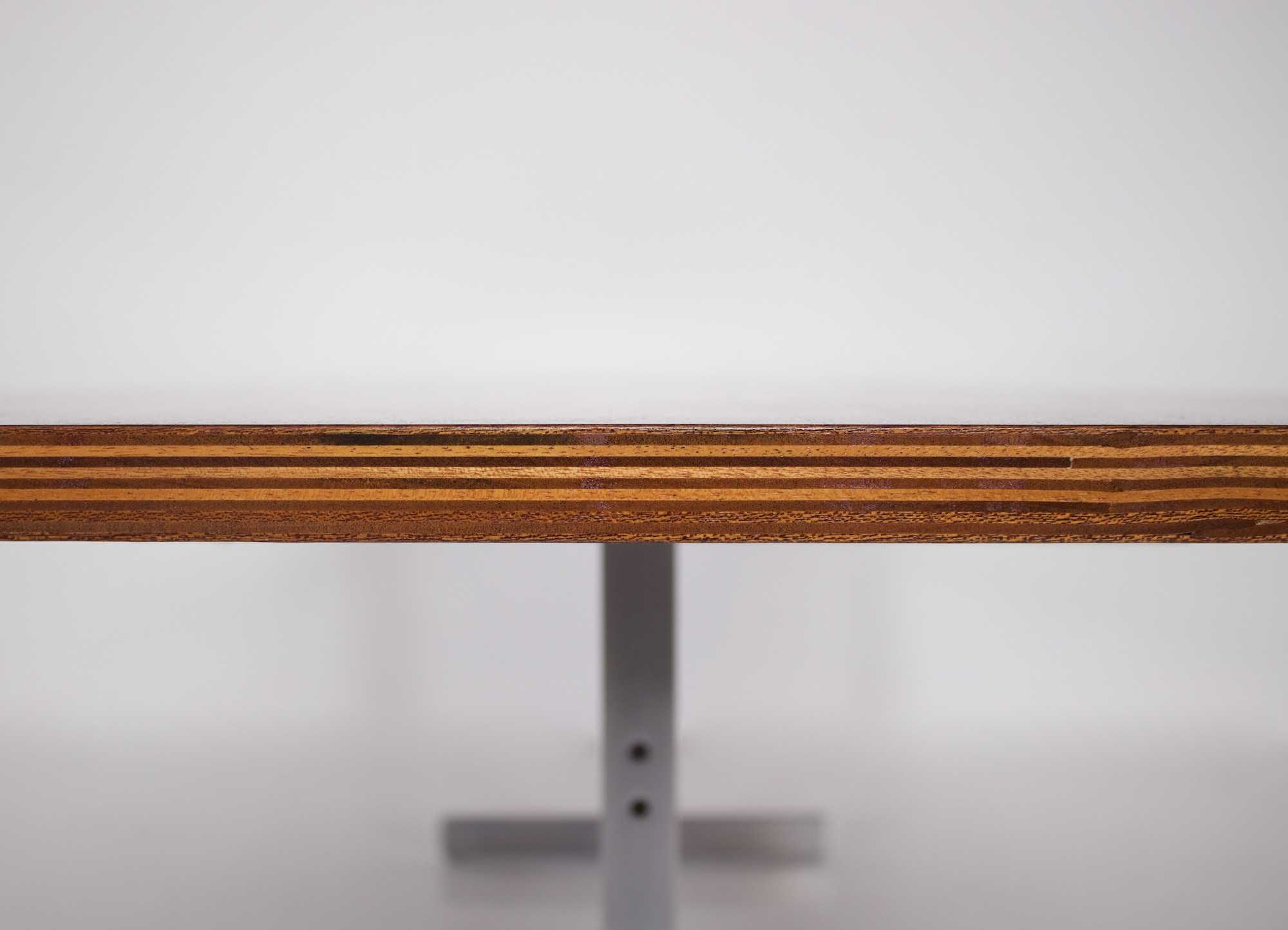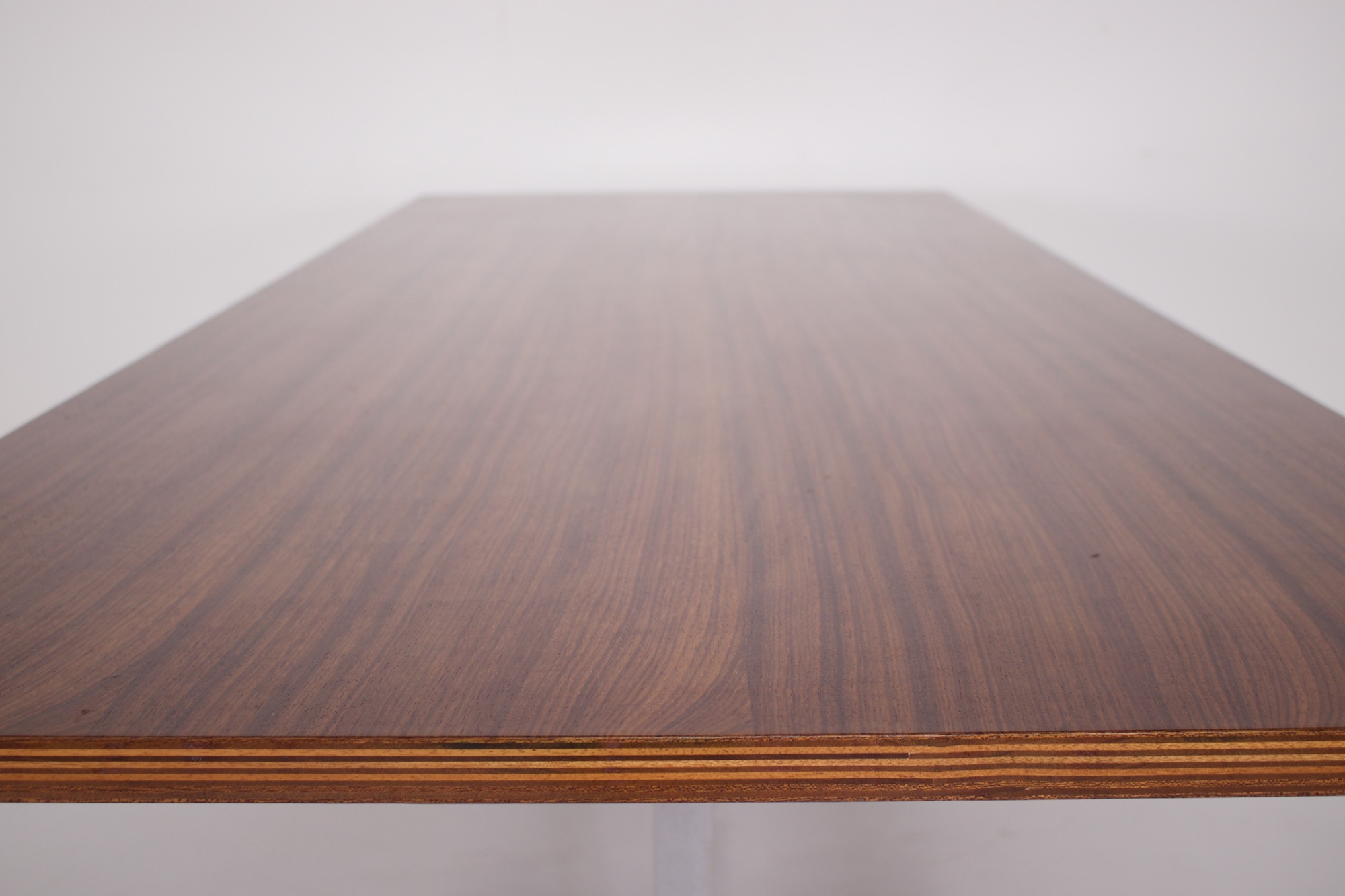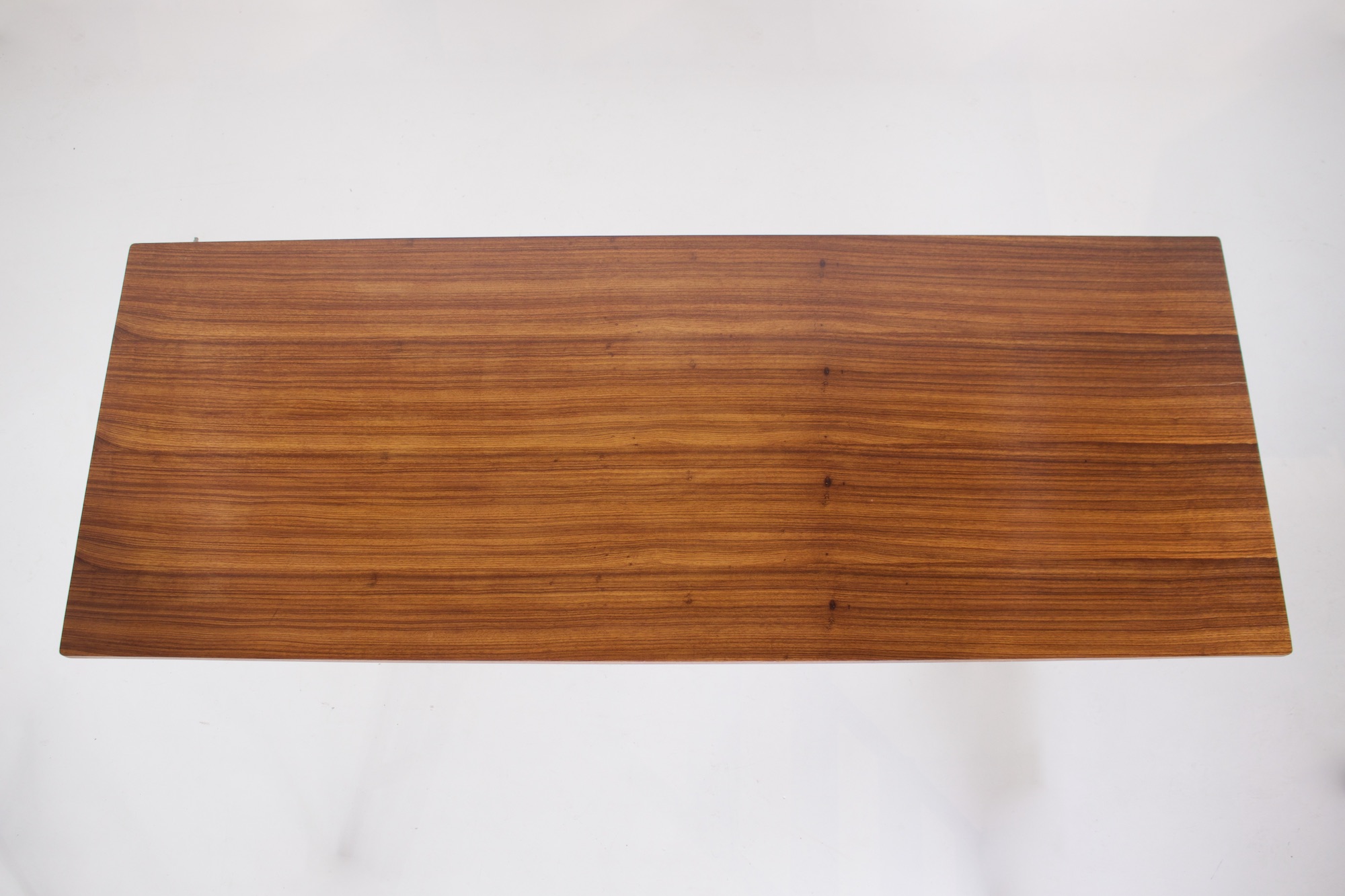 • Jules Wabbes und Le Mobilier Universel, rechteckiger Tisch aus Palisanderfurnier auf einem Stahlblattgestell, um 1970.