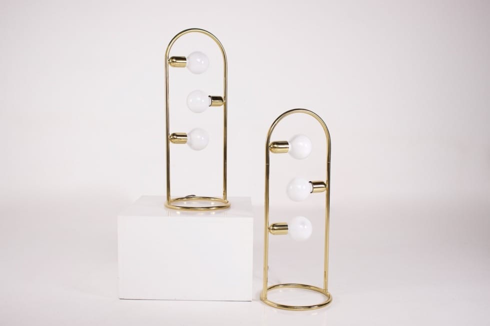 - Boden- oder Tischlampe, röhrenförmige Struktur aus Messingbogen mit 3 E27 Glühbirnen. Eine Arbeit aus den 1970er Jahren im Geschmack von Gaetano Sciolari.