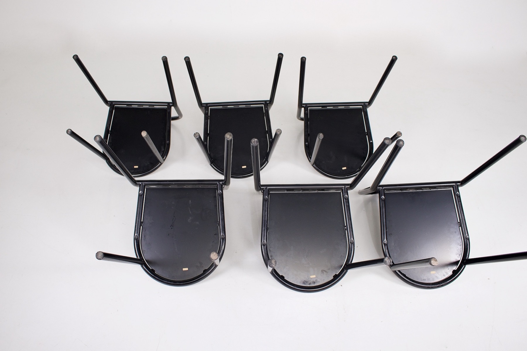These 6 chairs are very well made, stable and solid. They are marked “RMS” under the seat, and are undoubtedly unrelated to Ecart production.