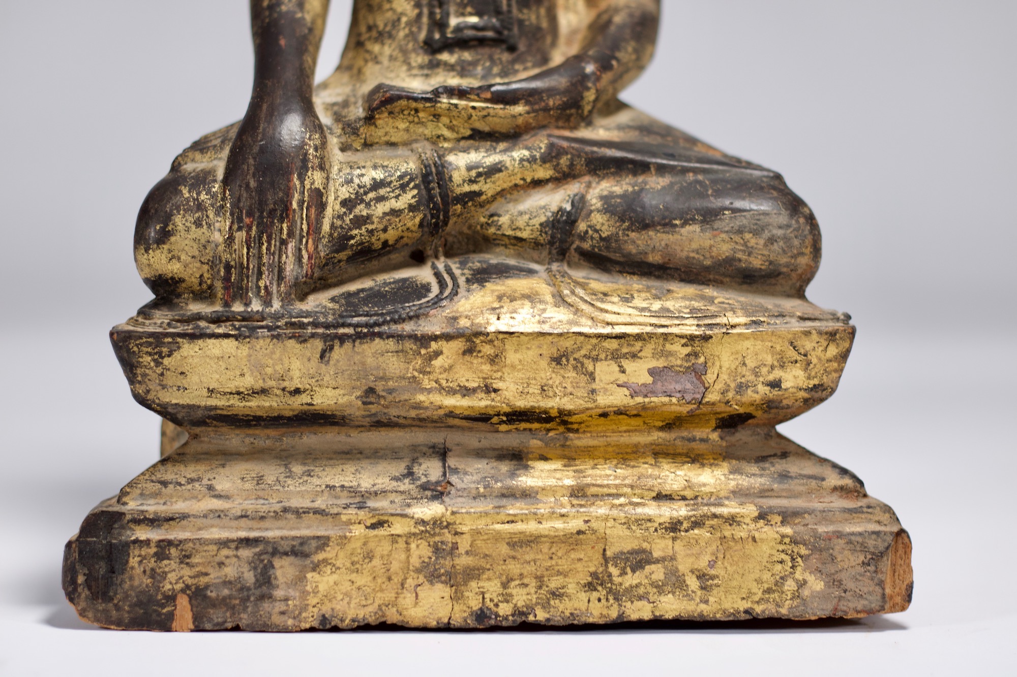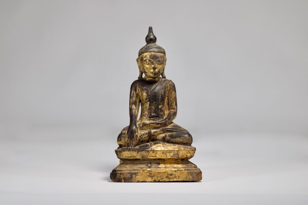 - Buddha in bhumisparsha mudra, black lacquer and gilding, Burma, Shan, 19th century.