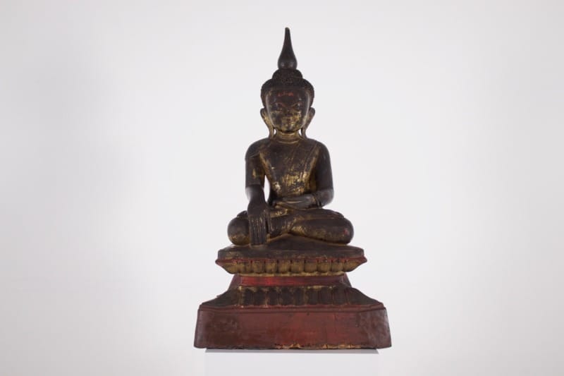 - Mandalay (1857-1885/1948): The throne features a double row of stylized lotus petals, announcing the emerging influence of the Mandalay style, as do the red repaints. Exactly the same treatment can be seen on this example.