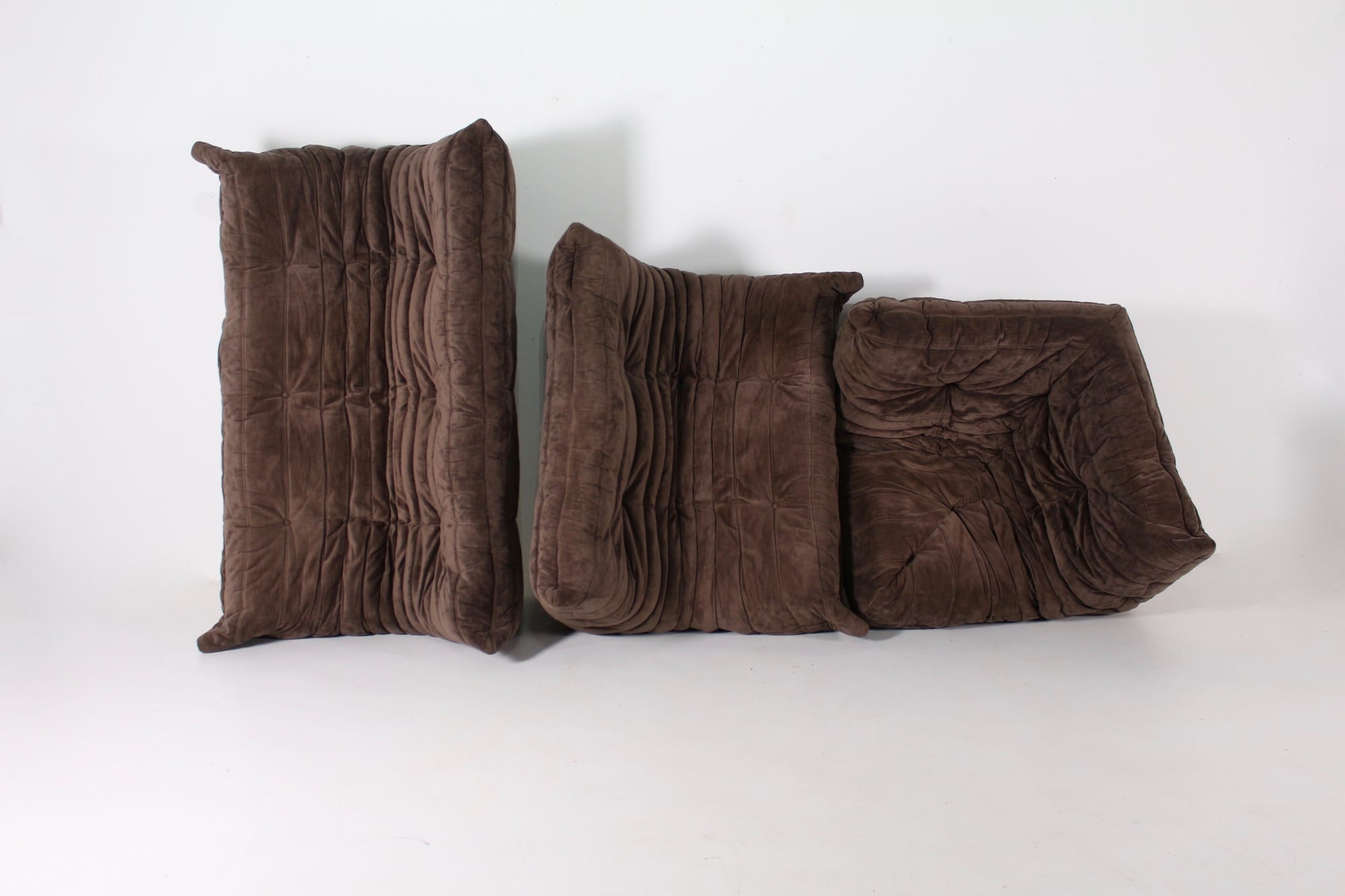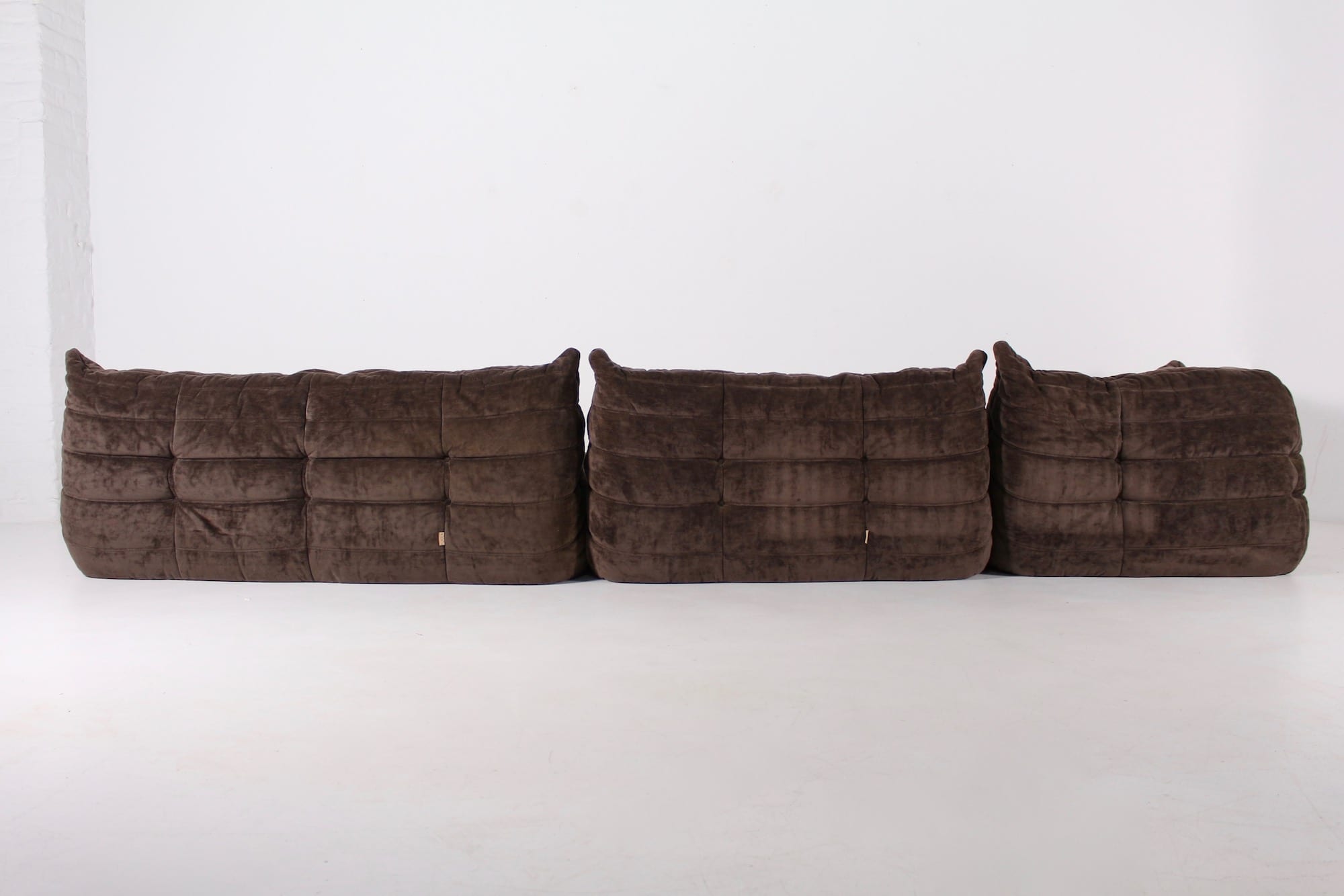 Salon Togo in brown velvet, Ligne Roset publisher circa 1970.