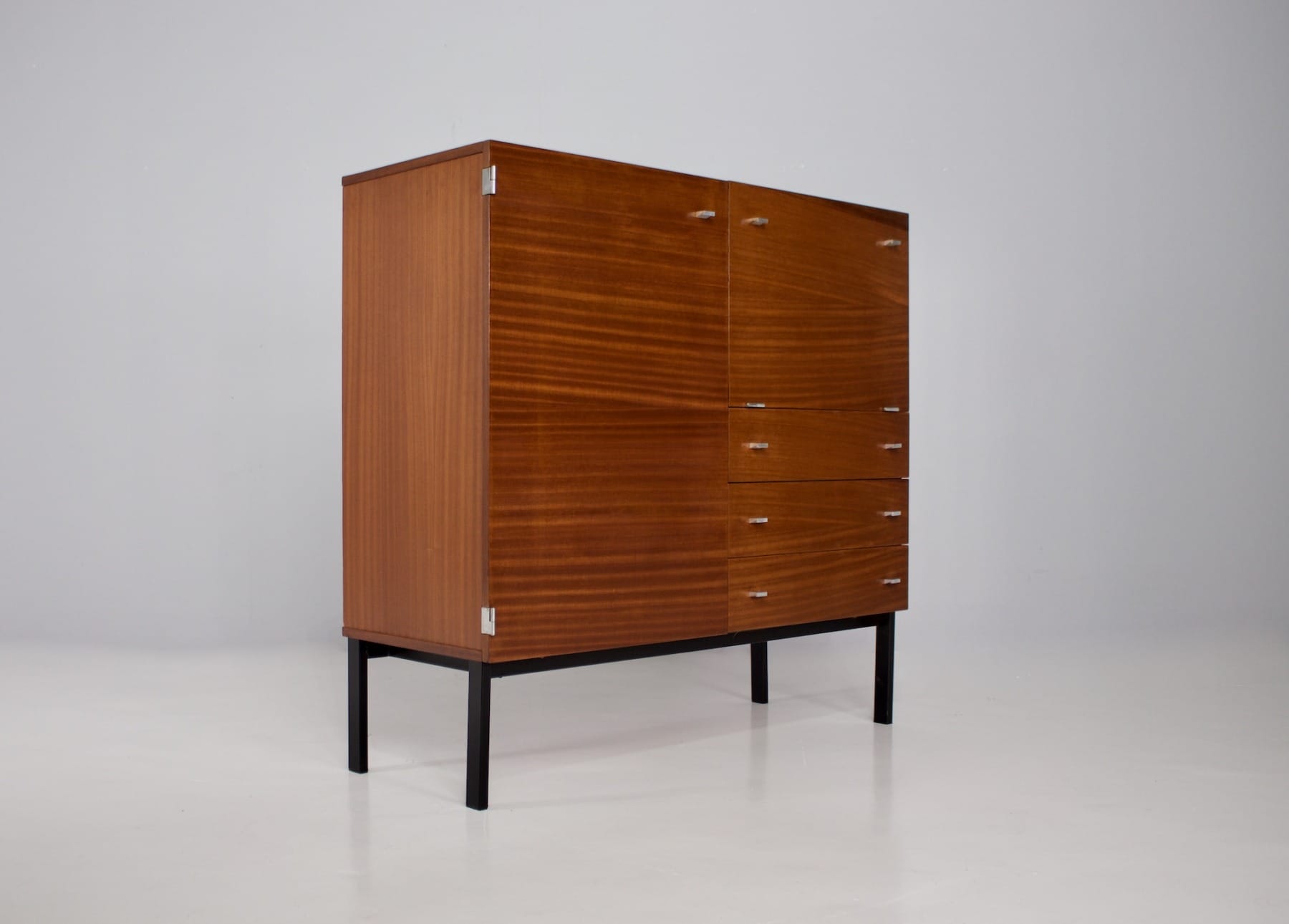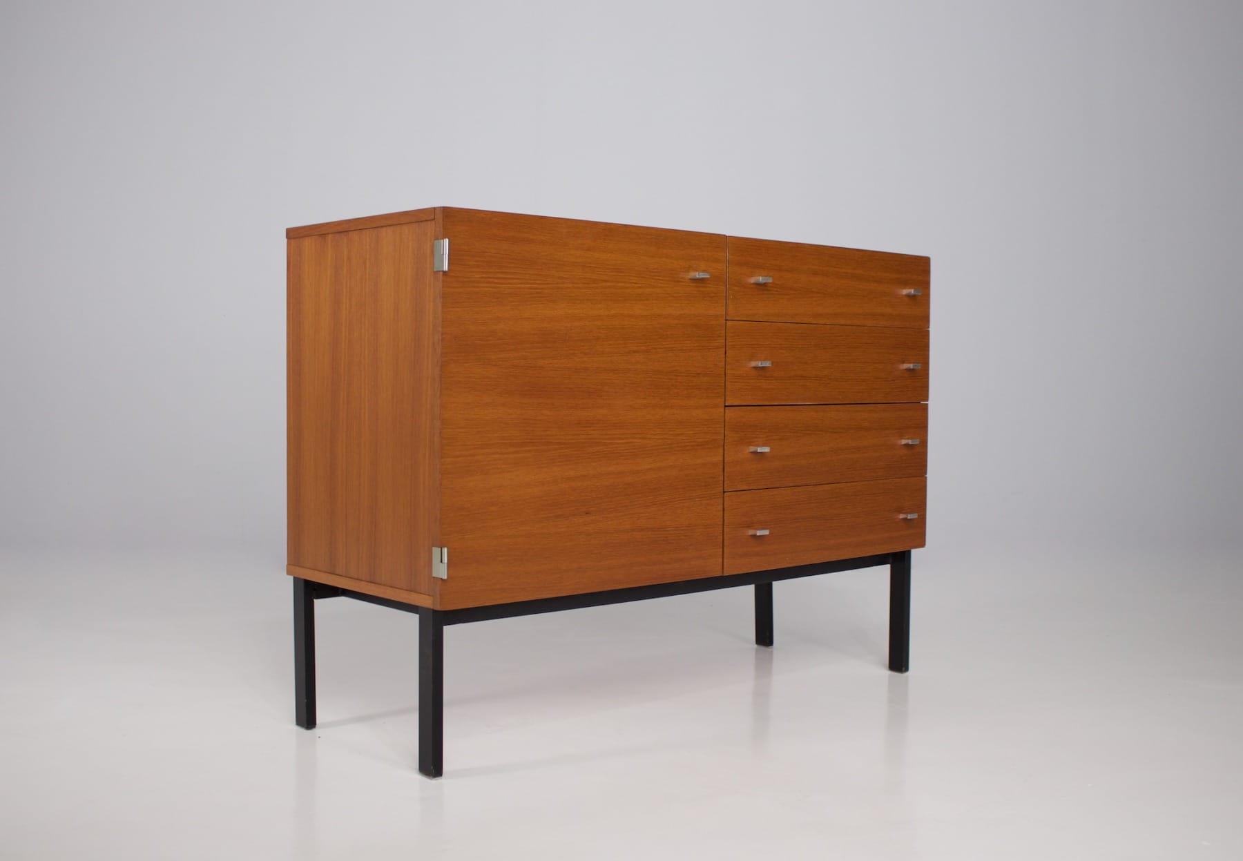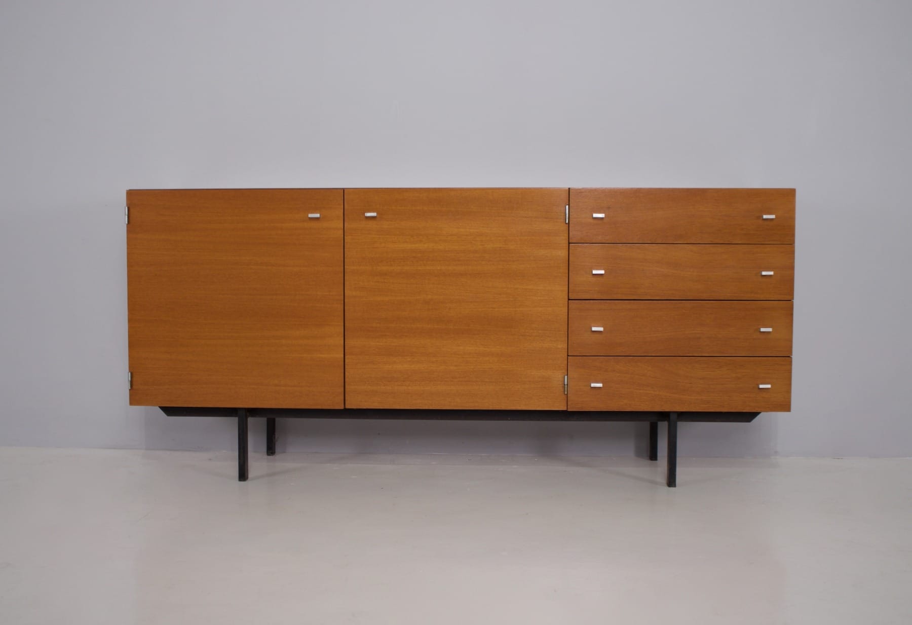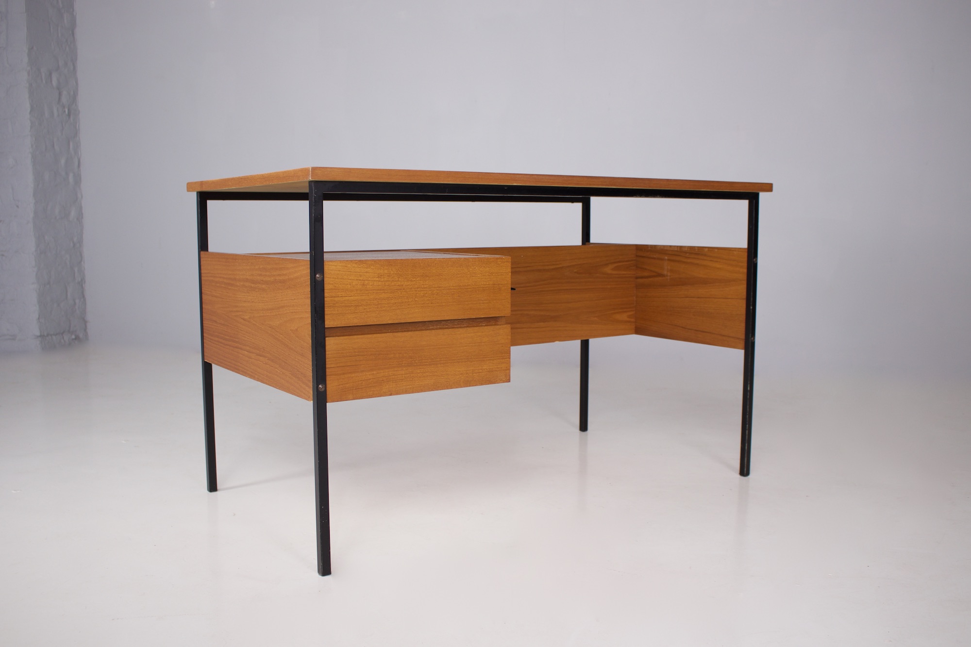Pierre Guariche (1926-1995) est l’une des grandes figures du design français d’après-guerre. Architecte et designer, il défend l’idée d’un mobilier moderne, accessible et pensé pour le confort du quotidien. Son style : des lignes pures, une fonctionnalité rigoureuse et une élégance discrète — sans jamais sacrifier l’usage.