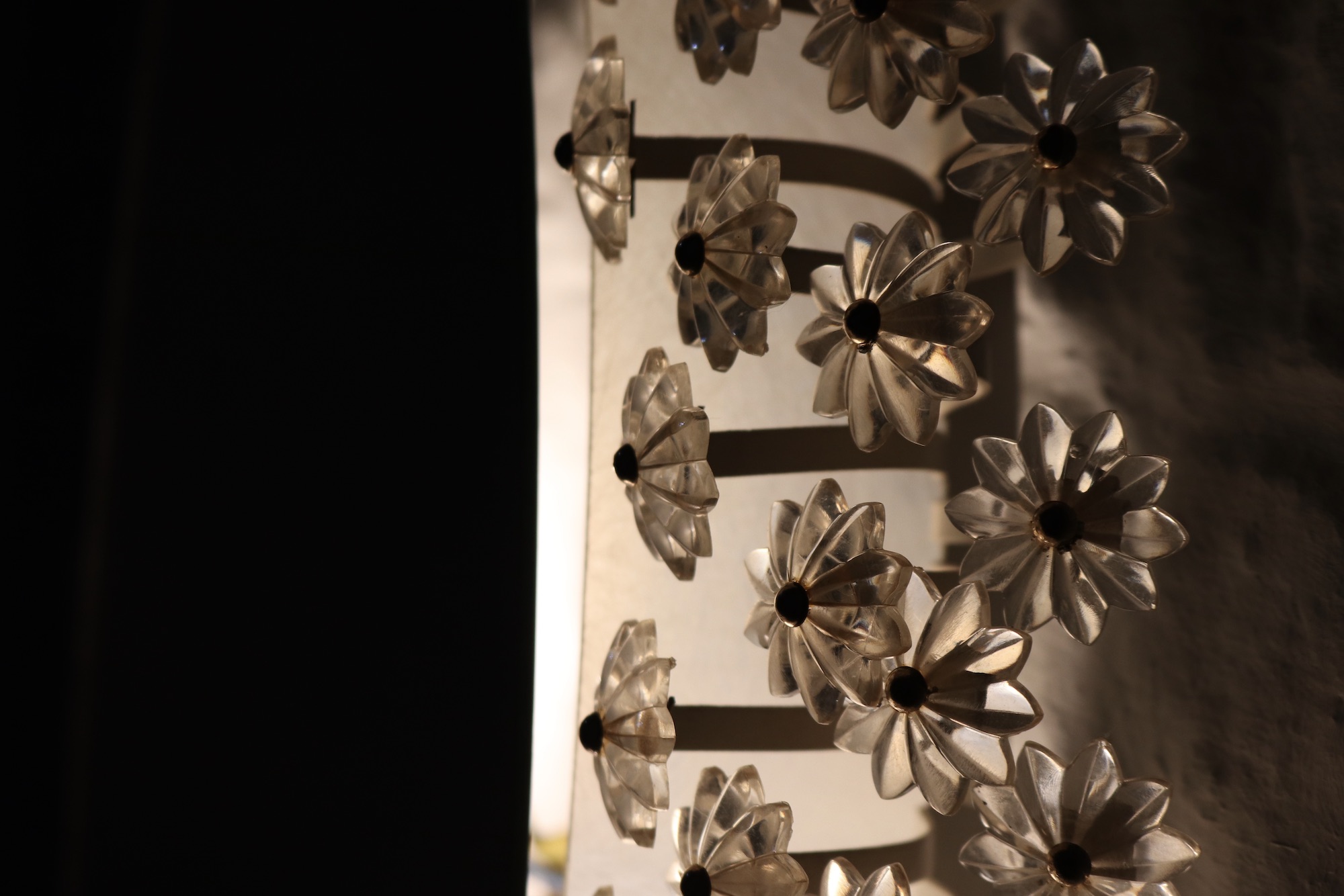 - Emil Stejnar & Rupert Nikoll, specchio retroilluminato circondato da stelle di lucite trasparente su doghe di acciaio bianco.