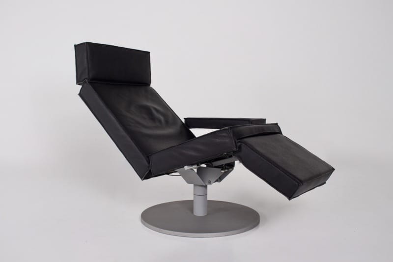 Disegnata da Maarten Van Severen, la MVS Lounge Chair, prodotta da Durlet, è uno dei suoi pezzi più rappresentativi, che unisce rigore formale, comfort controllato e ingegneria discreta. La sedia poggia su una base circolare in metallo verniciato a polvere, che garantisce una grande stabilità pur permettendo alla sedia di essere inclinata. La Maarten Van Severen Durlet Lounge Chair è famosa anche per il meccanismo incorporato nella parte inferiore della seduta, che assicura una transizione fluida tra la seduta e la reclinazione, rendendo la sedia adattabile a una varietà di usi.