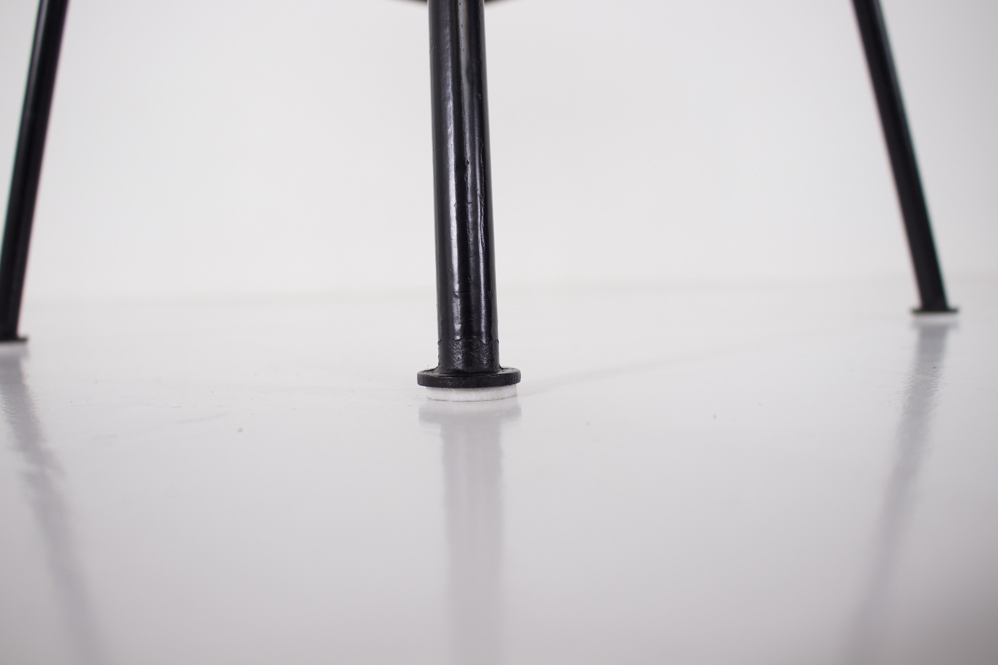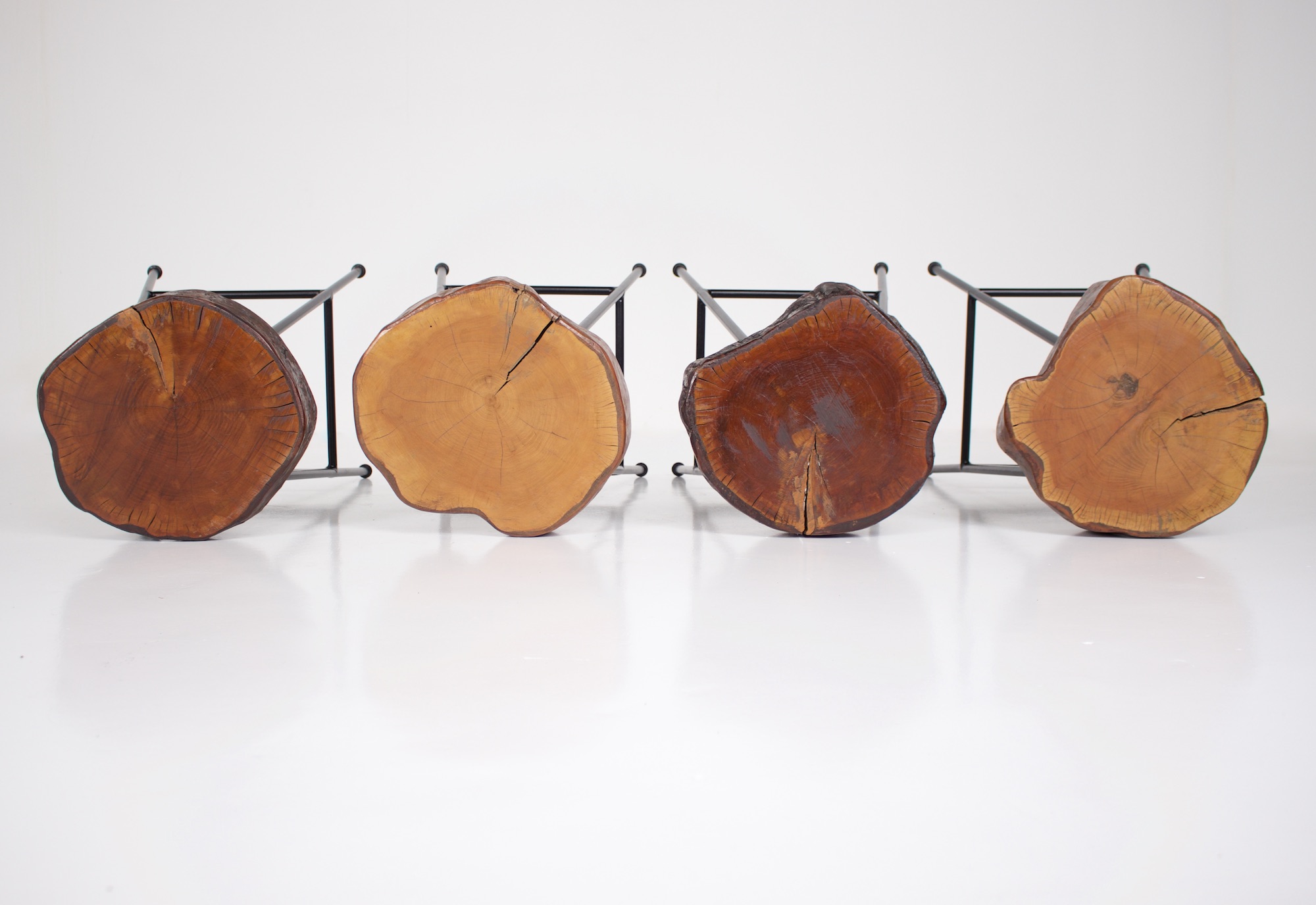 - Suite di 4 sgabelli con struttura in acciaio laccato nero e sedute in legno di noce.