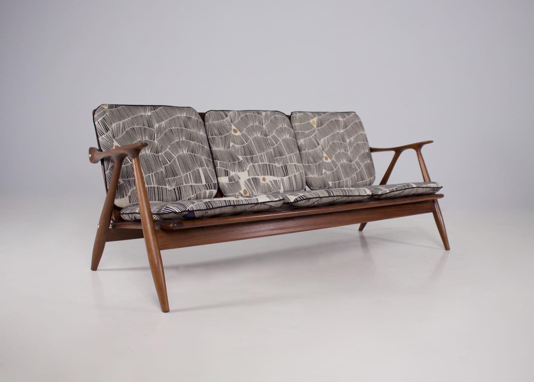 De door Vintage Addict geselecteerde zitbanken behoren tot authentiek design uit de periode, met bijzondere aandacht voor verhoudingen, originele materialen en de kwaliteit van de assemblage. Deze selectie brengt zorgvuldig gerestaureerde stukken samen uit het modernistische design, mid-century, Europese, Scandinavische of Amerikaanse ontwerptradities, gekozen om hun fabricagekwaliteit en hun plaats in de geschiedenis van het design.
