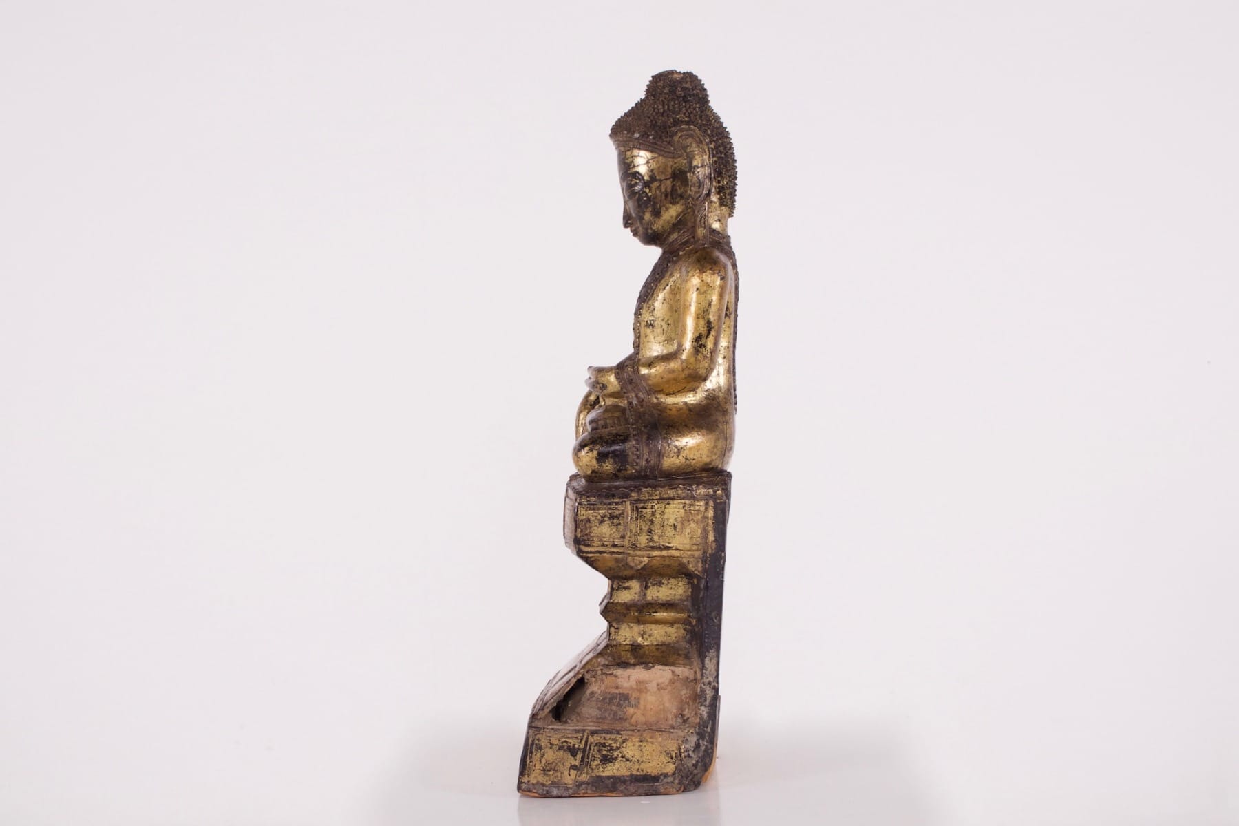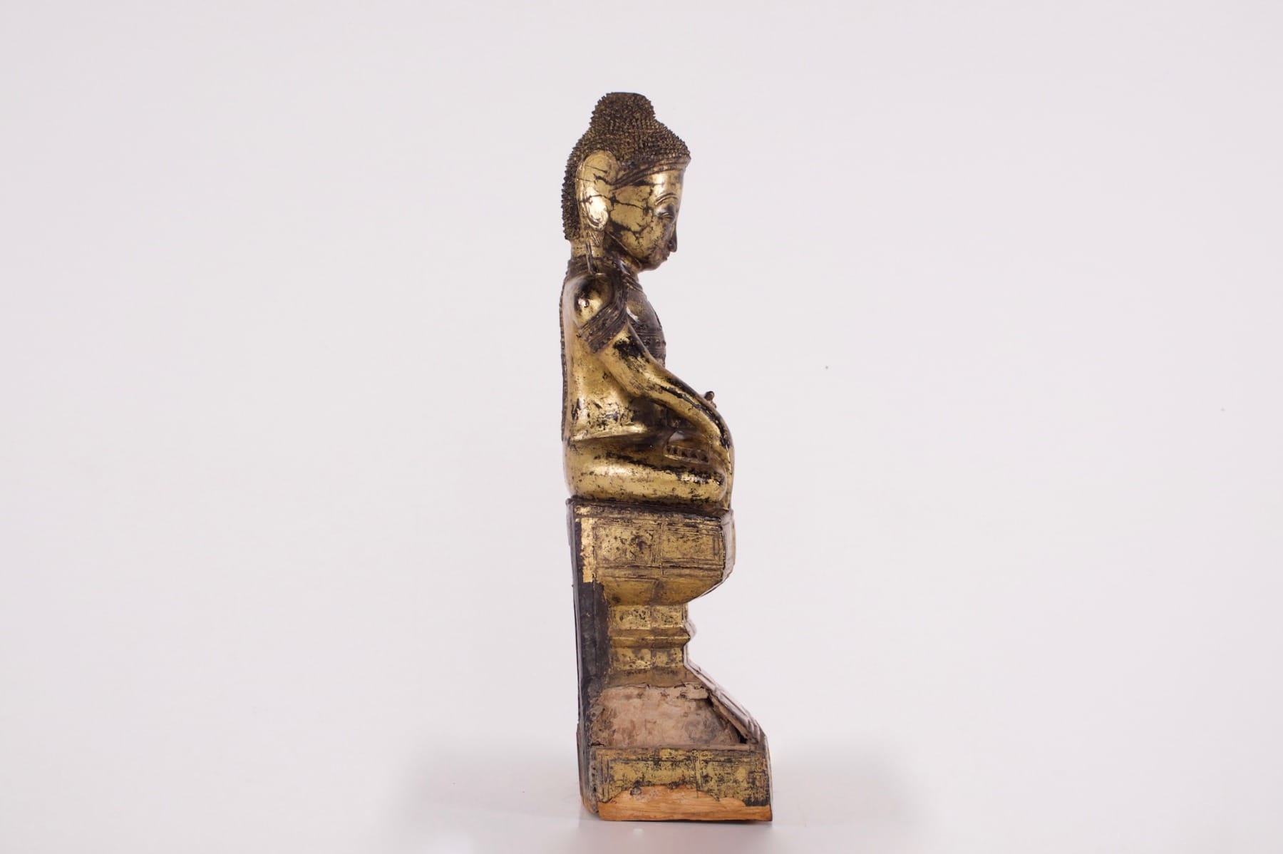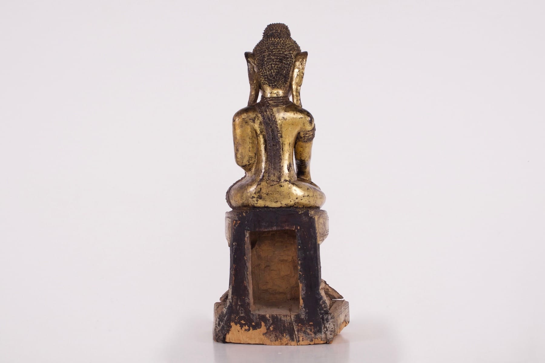 - Boeddha afgebeeld in Māravijaya. Gesneden hout, zwarte lak en resten van verguldsel. Birmese Boeddha in de Amarapura-stijl, een artistieke stroming die zich in Birma ontwikkelde aan het eind van de 18e en het begin van de 19e eeuw, toen het koninklijk hof zich vestigde in Amarapura.