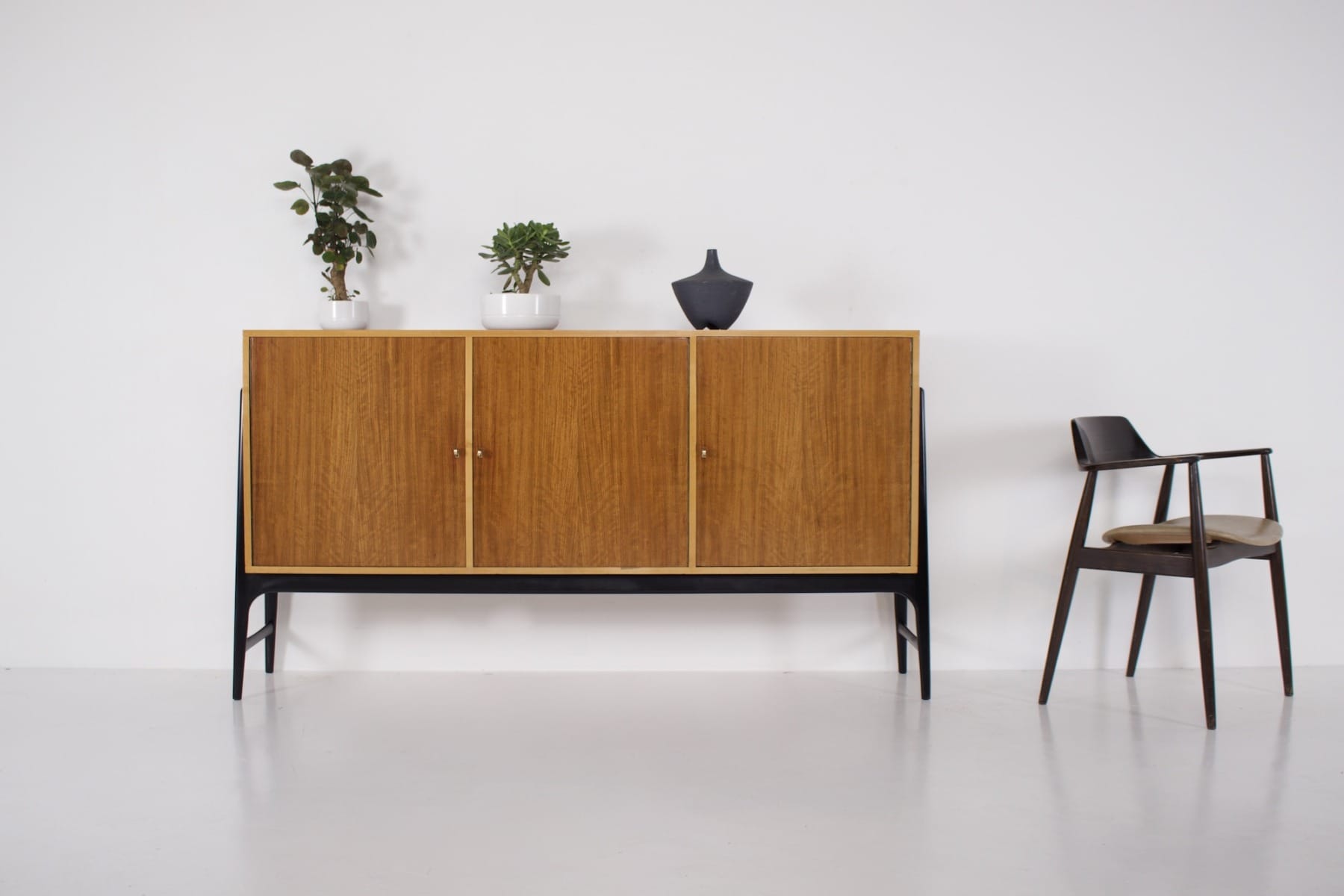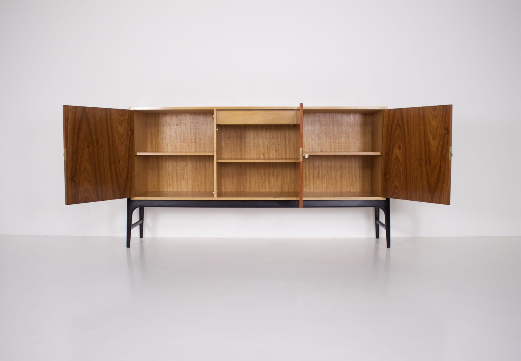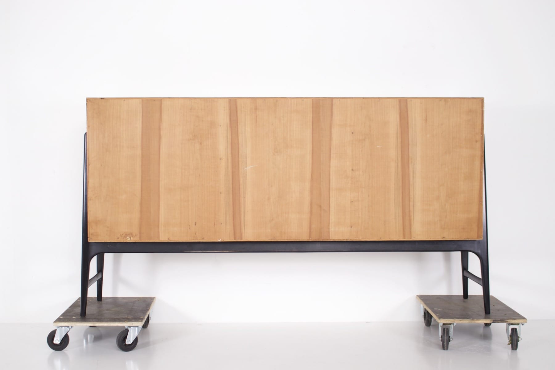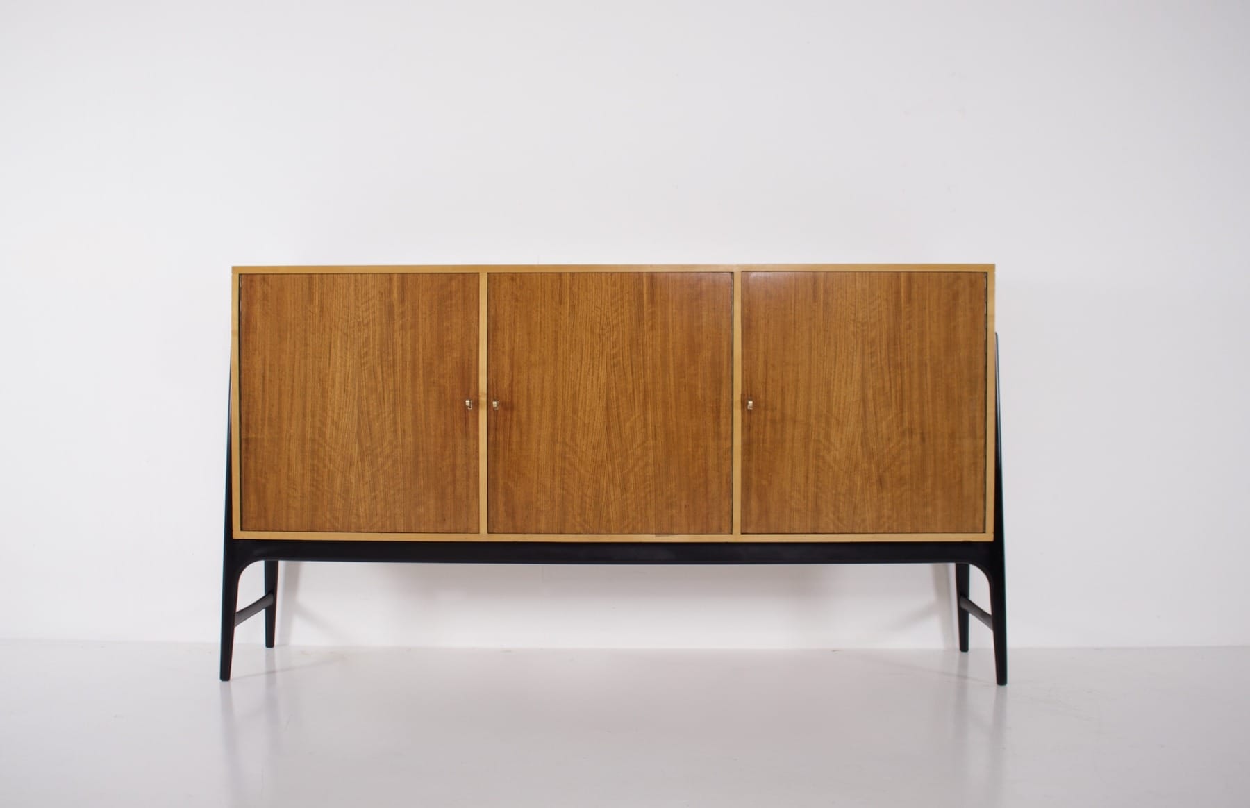 - Alfred Henrickx voor Belform éditeur, bubinga dressoir op zwart gelakte beukenhouten poten. Rond 1955.