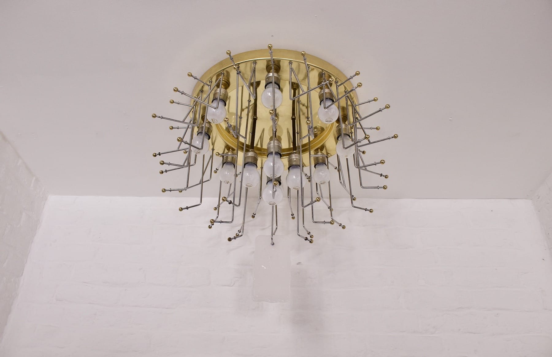 Grote plafondlamp van Murano glas en messing
