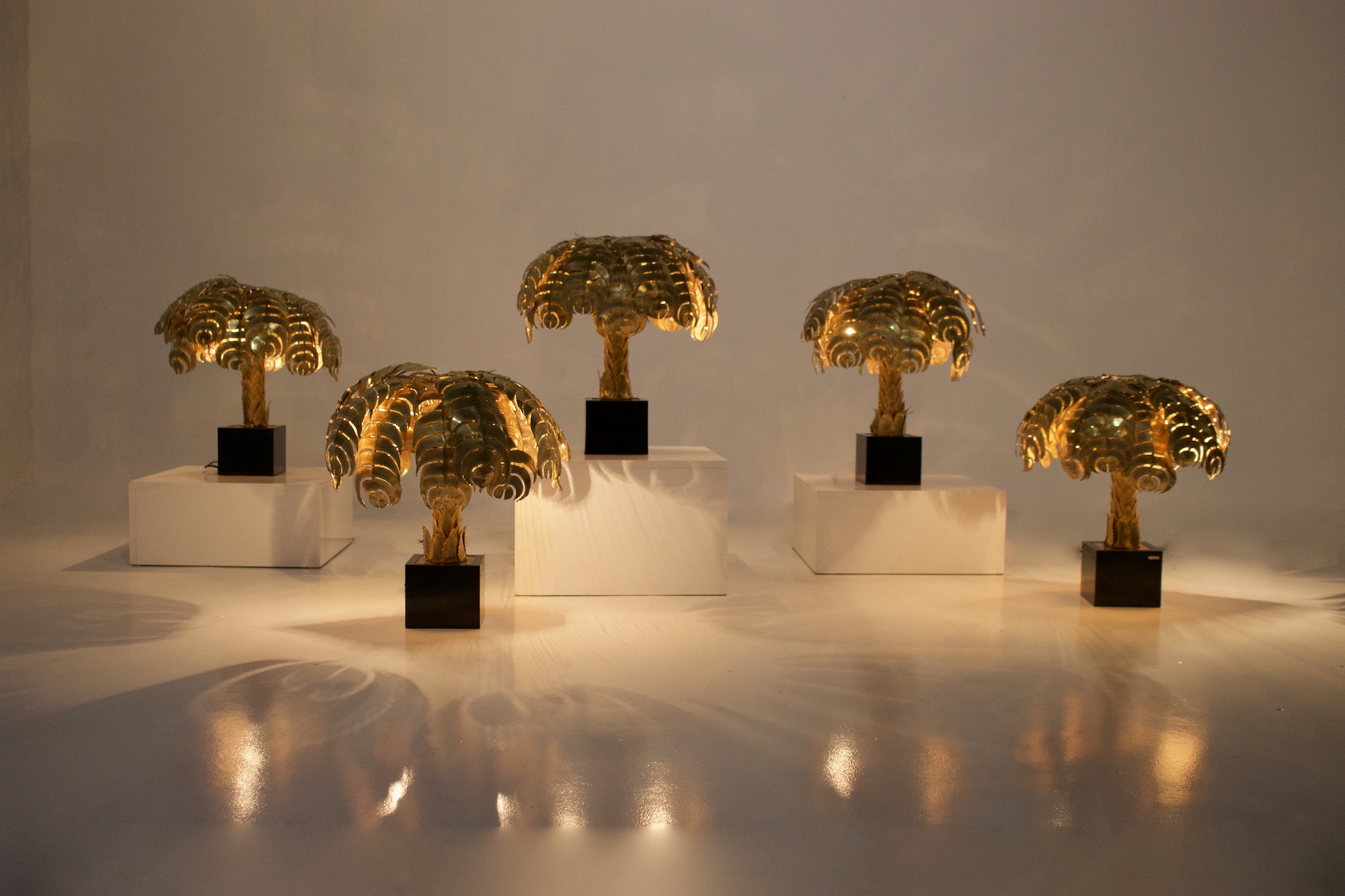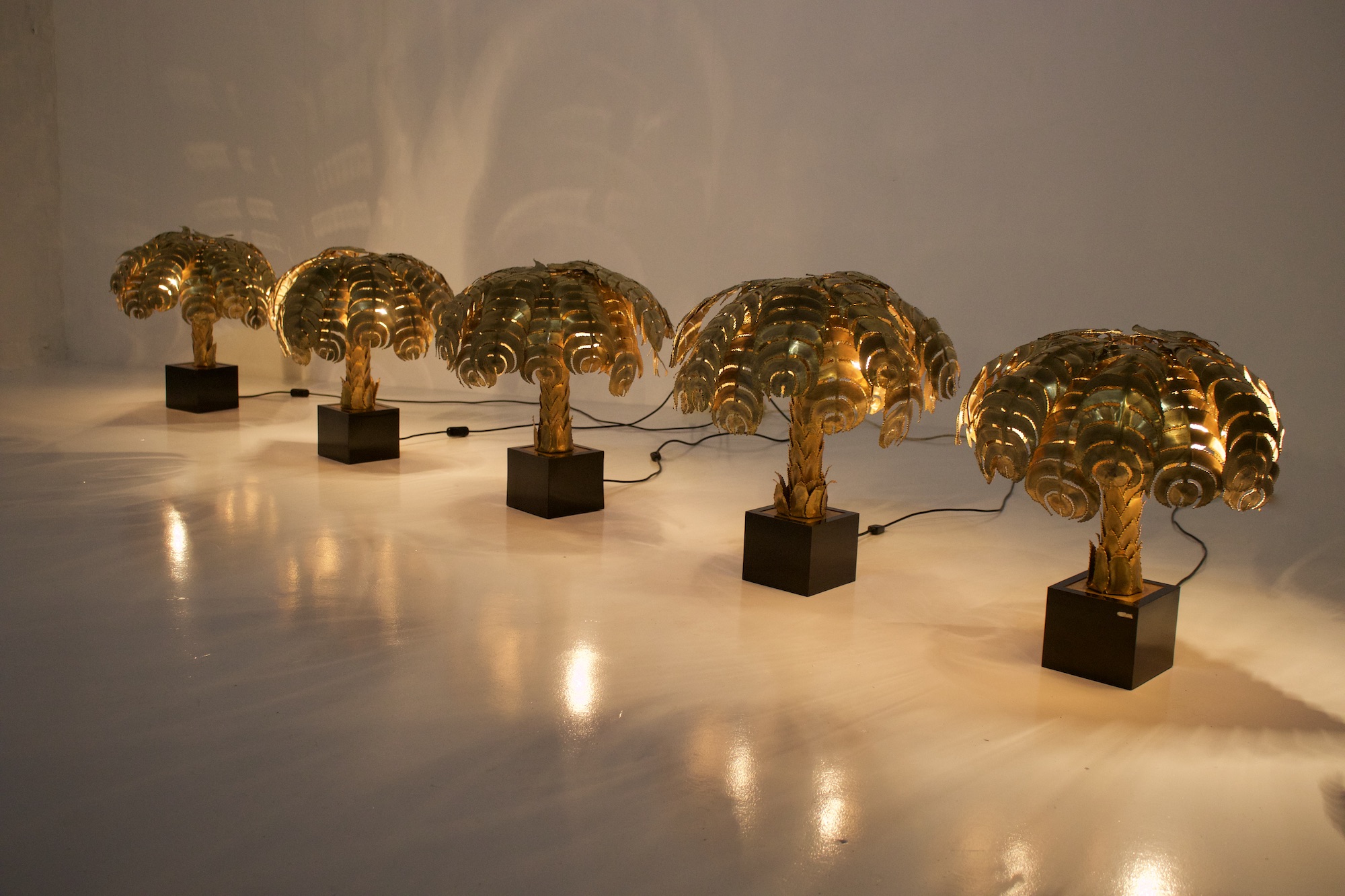 - Christian Techoueyres workshops voor Maison Jansen, palmboom lampen in massief messing, circa 1970.