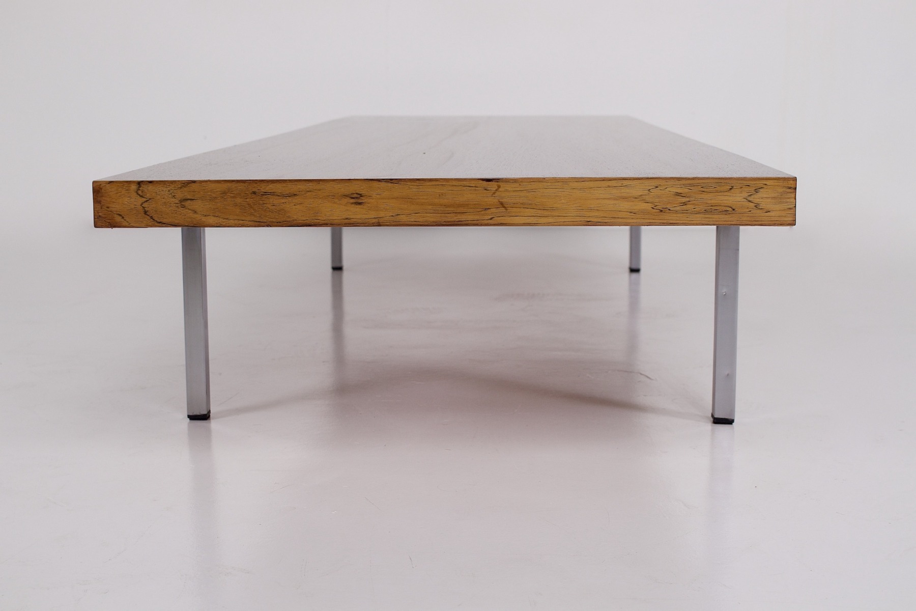 • Jacqueline en Antoine Philippon Lecoq, grote palissander salontafel met verchroomd stalen onderstel. Laauser éditeur, 1962.