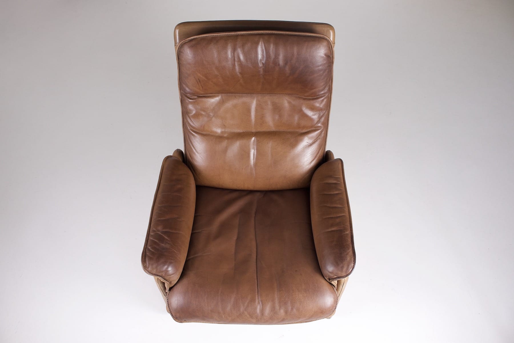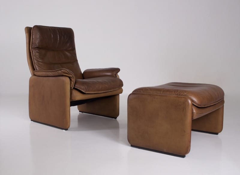 • DS 50″ verstelbare fauteuil met leren voetenbank, de Sede éditeur, Zwitserland, circa 1970.