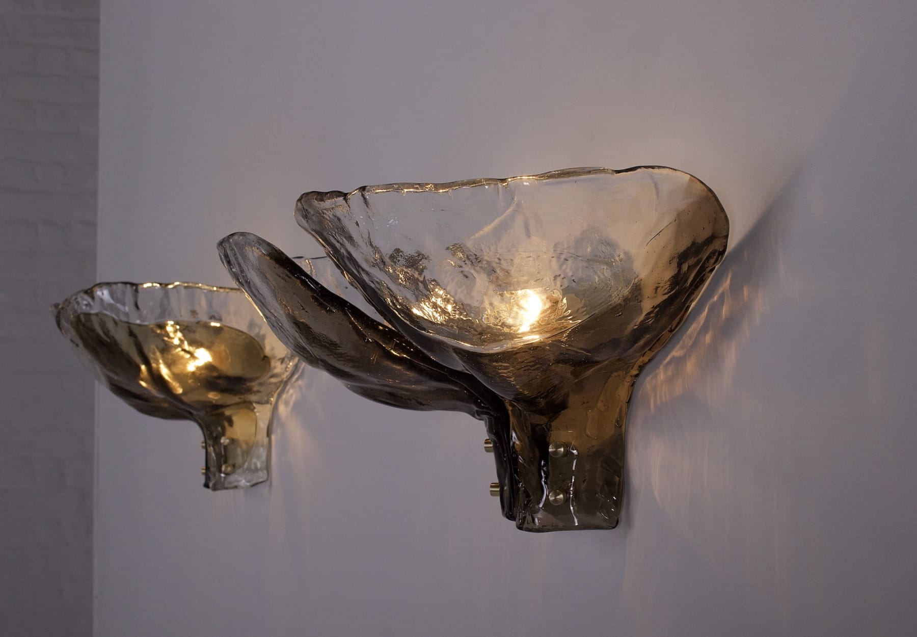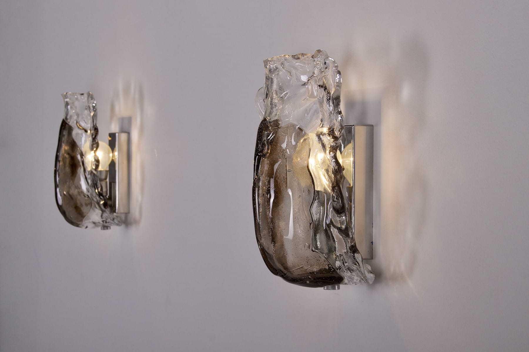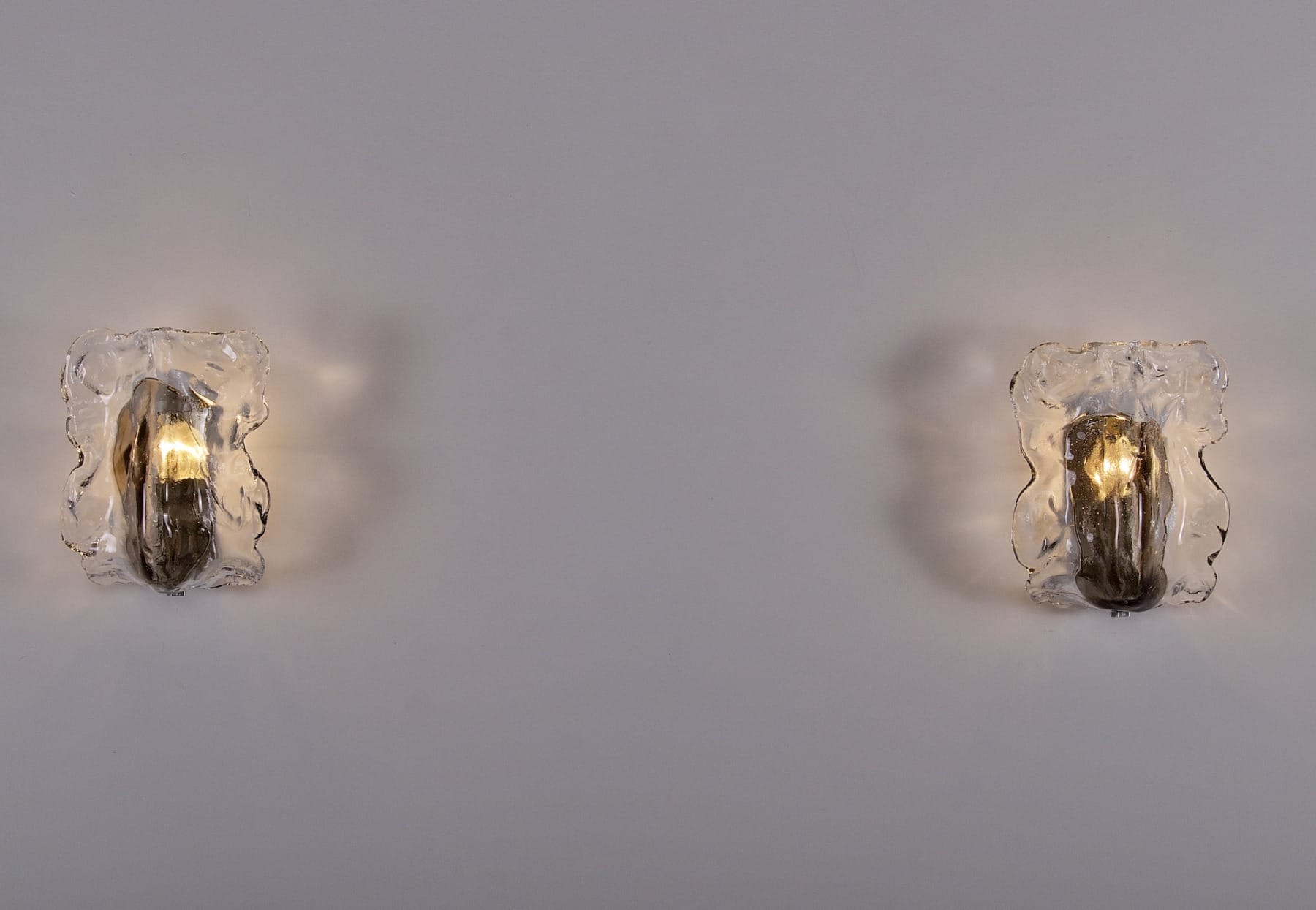 - Paire d’appliques en verre de Murano épais, probablement Mazzega / Nason, éditées par JT Kalmar vers 1970.