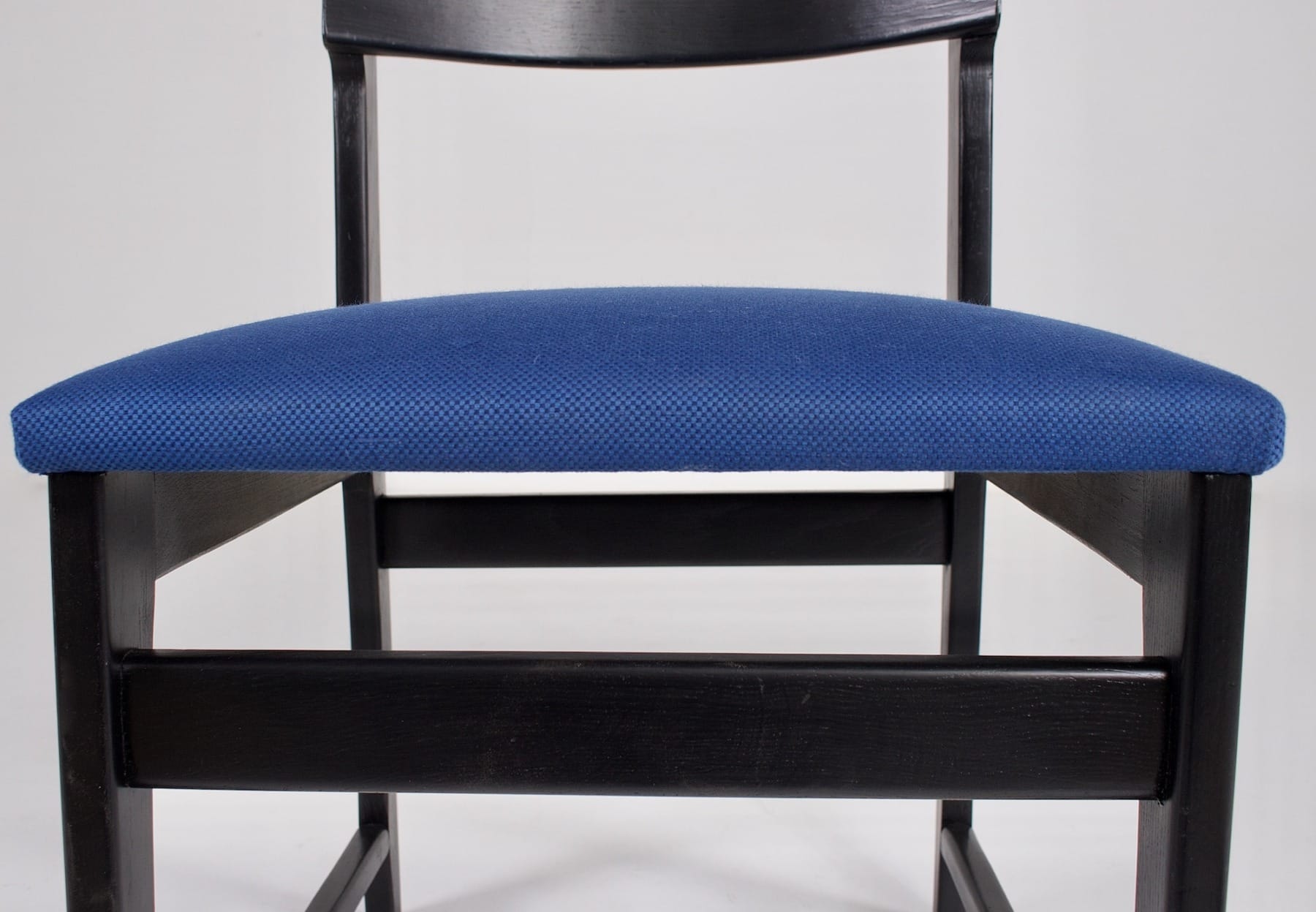 • Nouveau garnissage en jacquard bleu intense (www.chienvert.com), les mousses d’assise ont également été remplacés et sont en haute résilience.