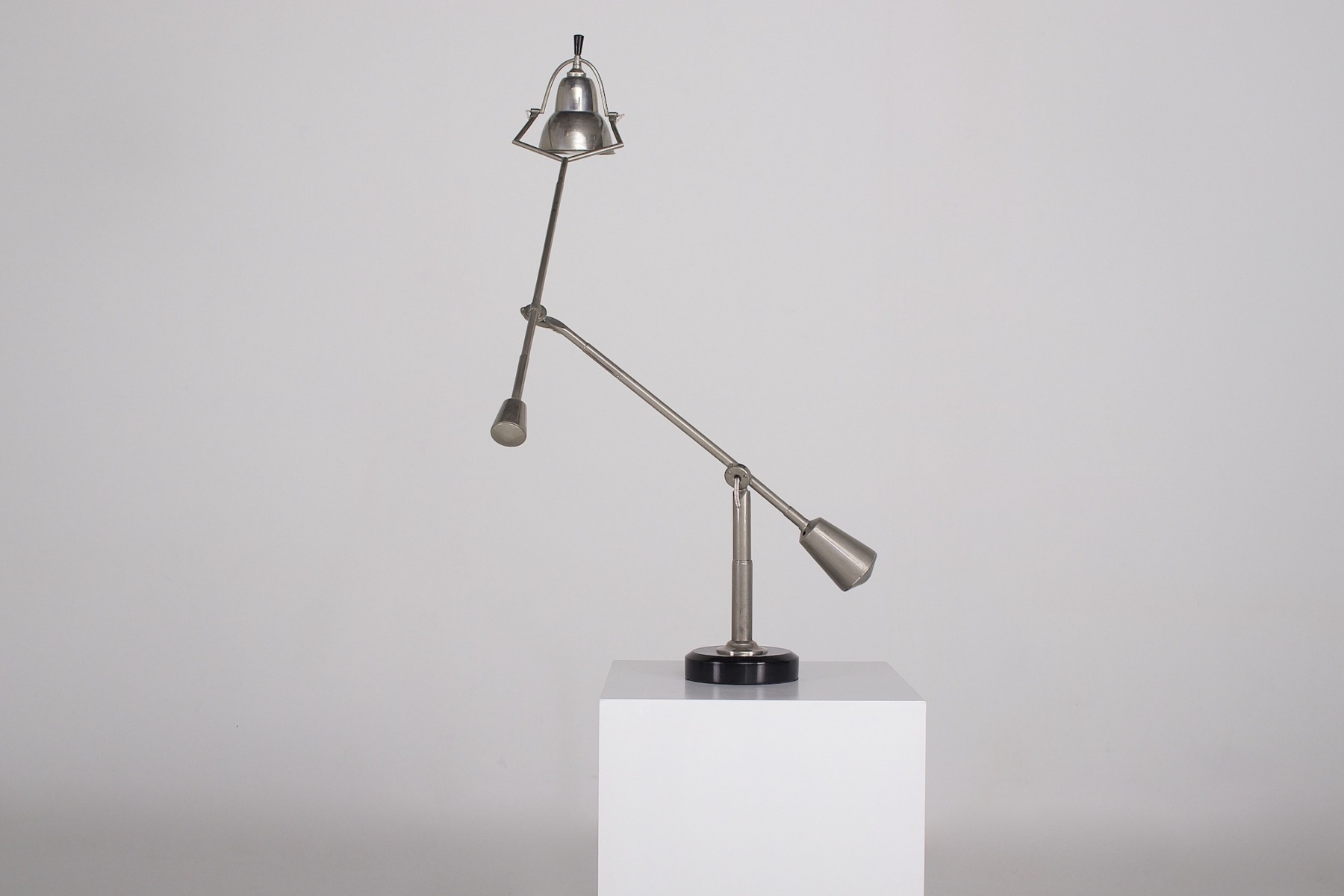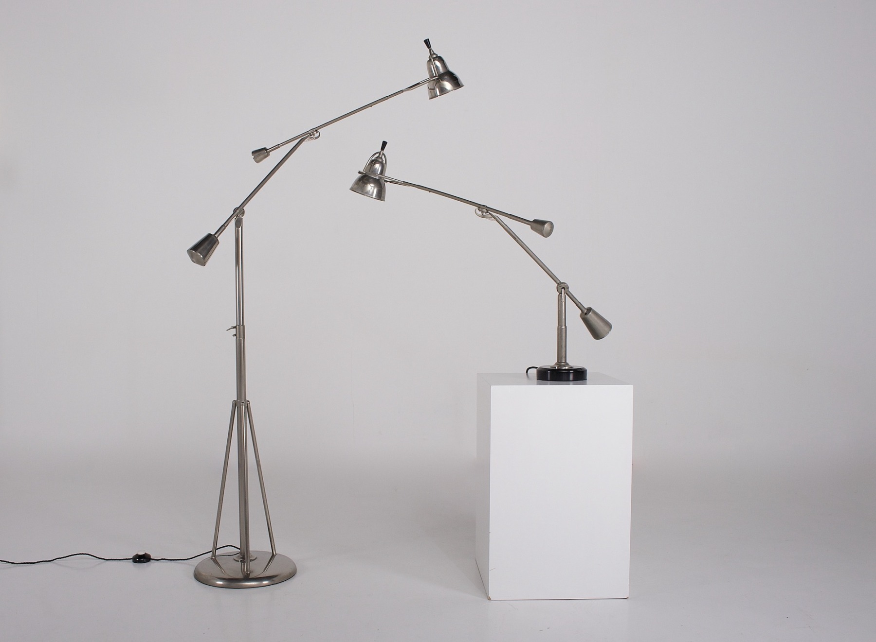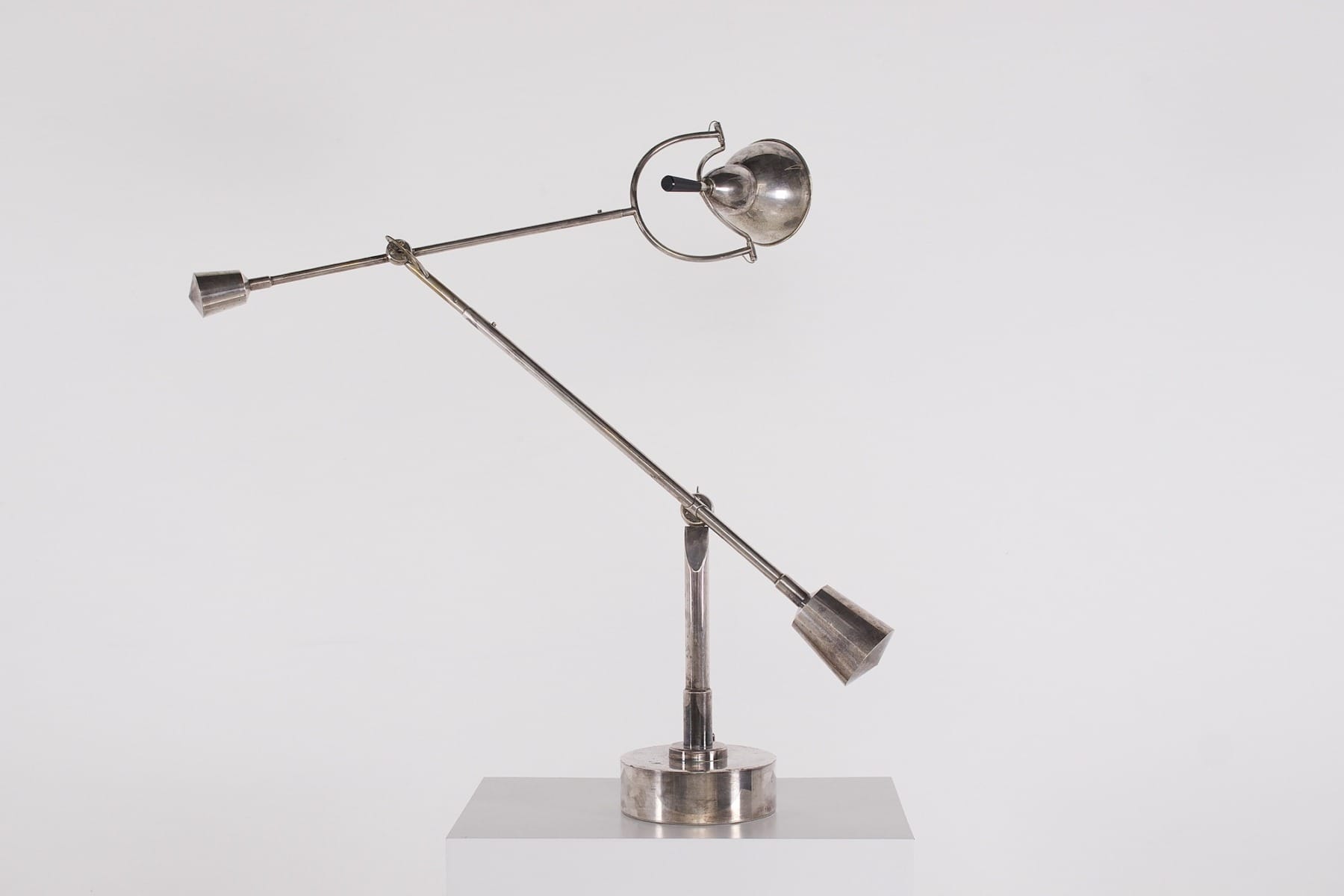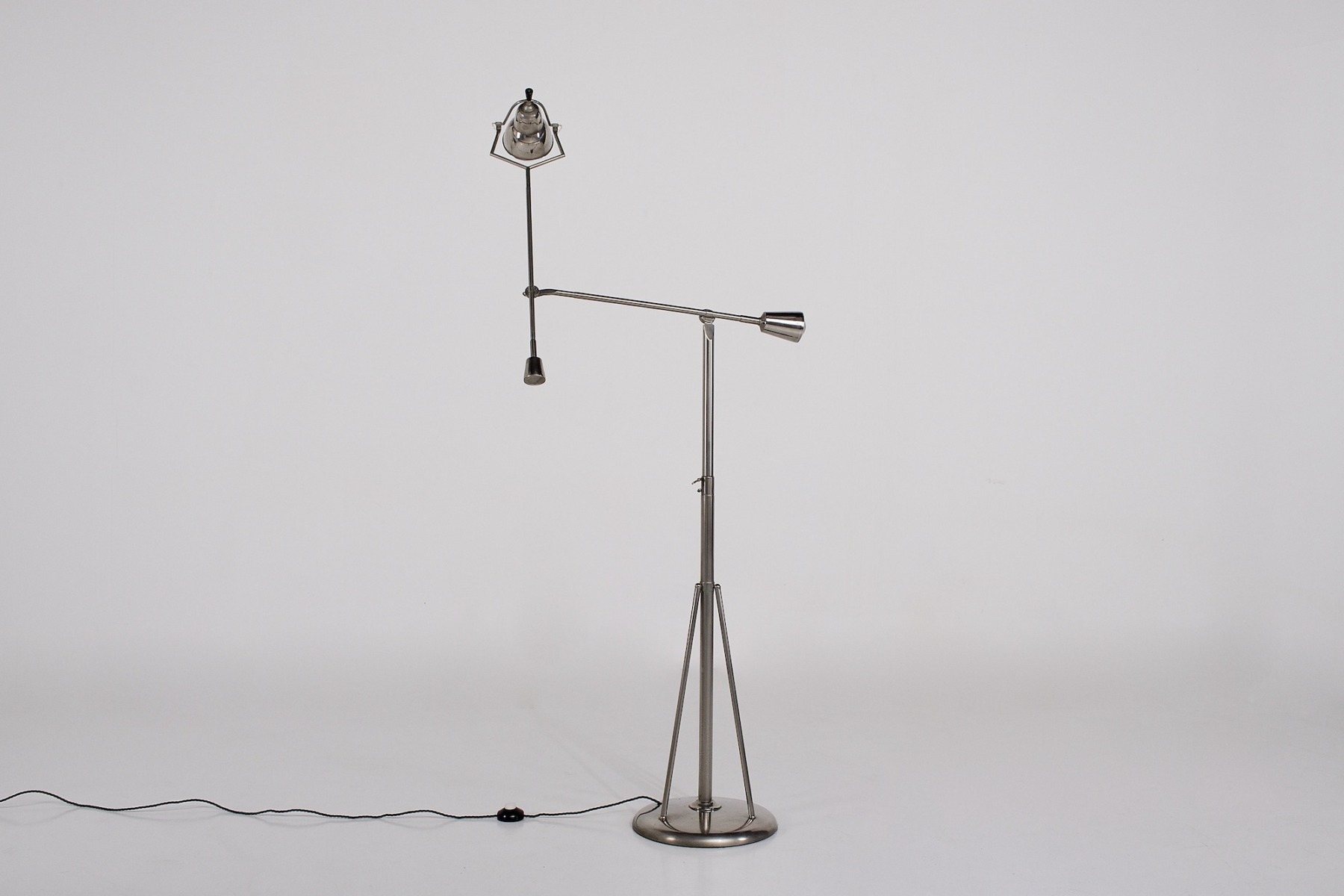 - Edouard Wilfrid Buquet, lampe sur pied à double balancier, en acier plaqué nickel, variante de la « Lampe Equilibrée », dessinée en 1927.