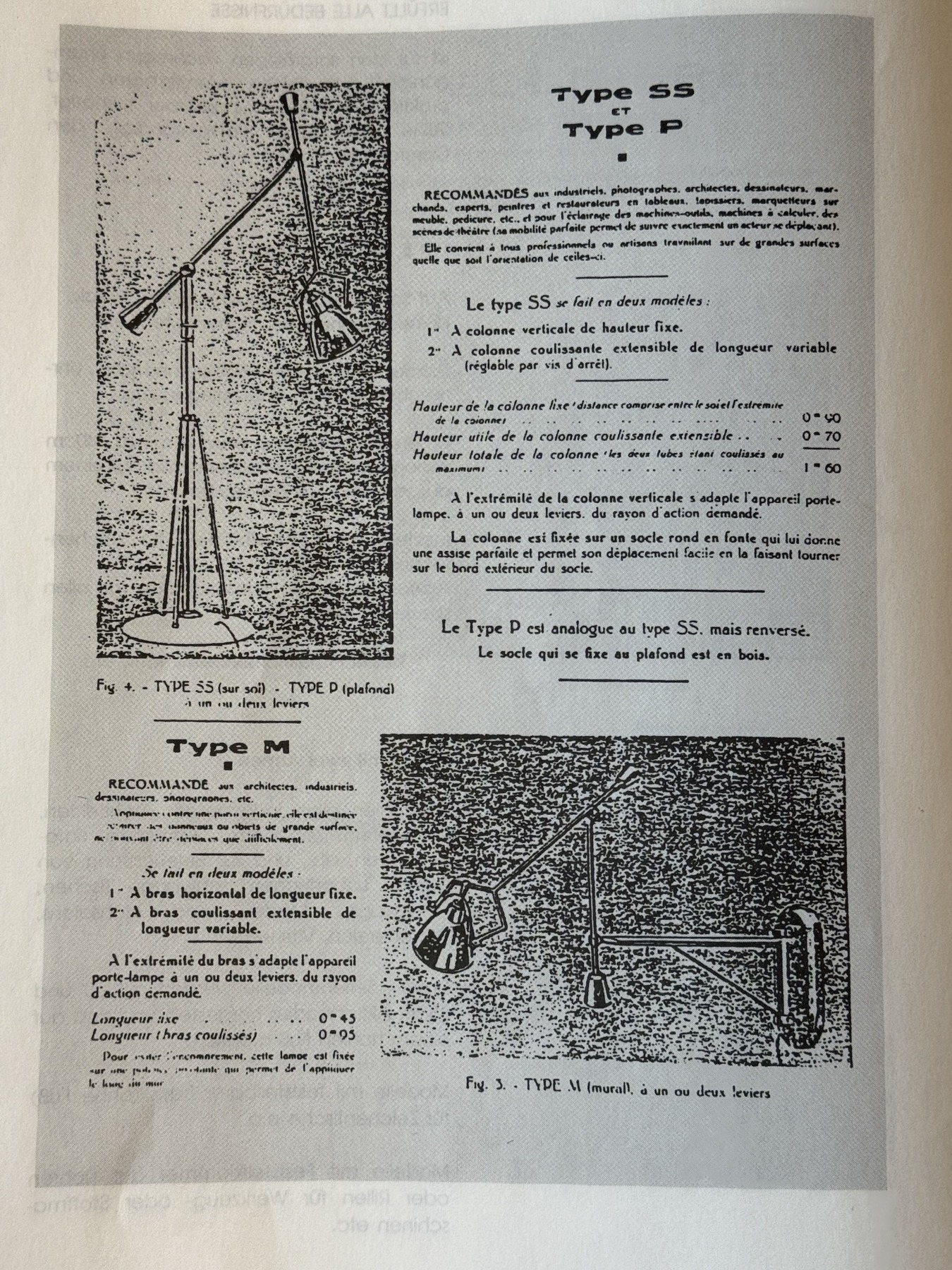 - Le catalogue original la mentionne comme « Type SS » (pour Sur Sol), on y trouvait également son équivalant inversé en plafonnier (Type P) ainsi qu’une variante à arrimage mural (Type M) .