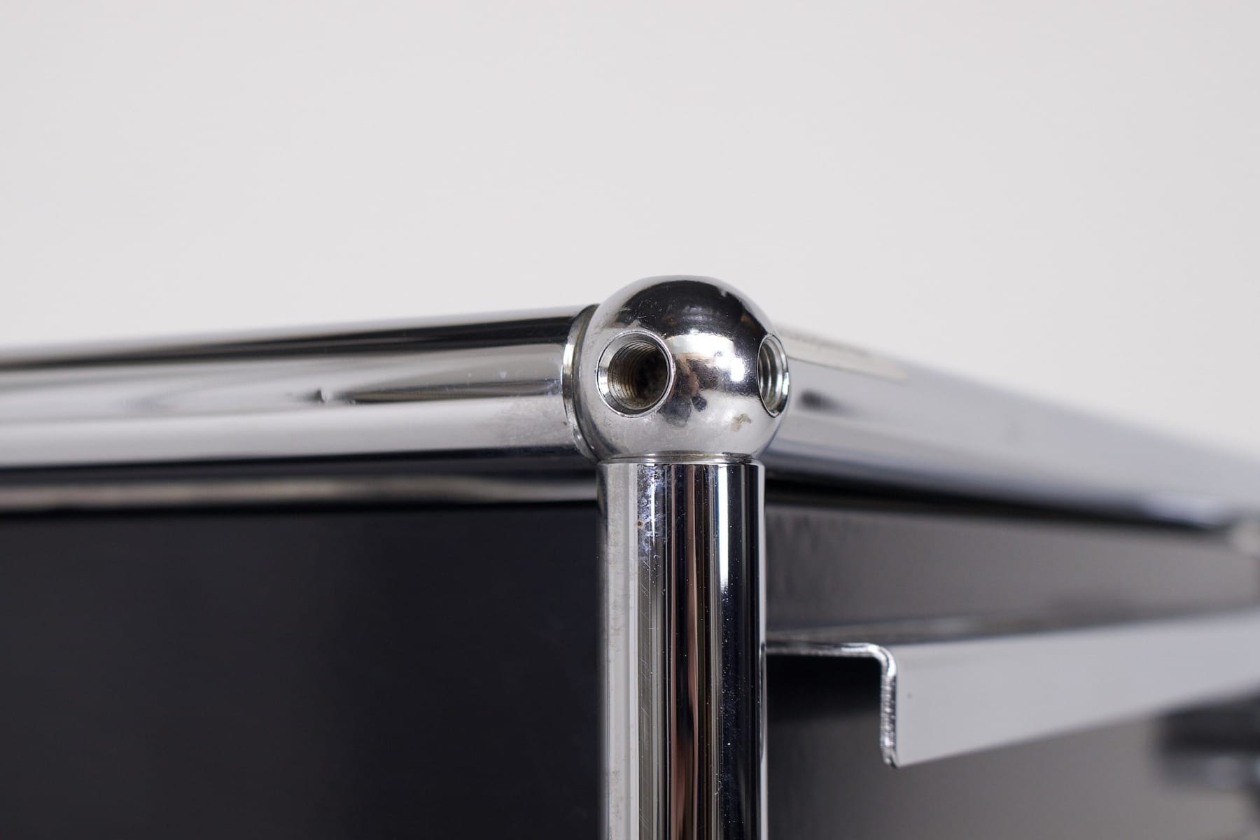 • Trolley à 3 tiroirs /classeur édité par U.S.M, en acier laqué noir et sections en acier chromé, vers 1980.