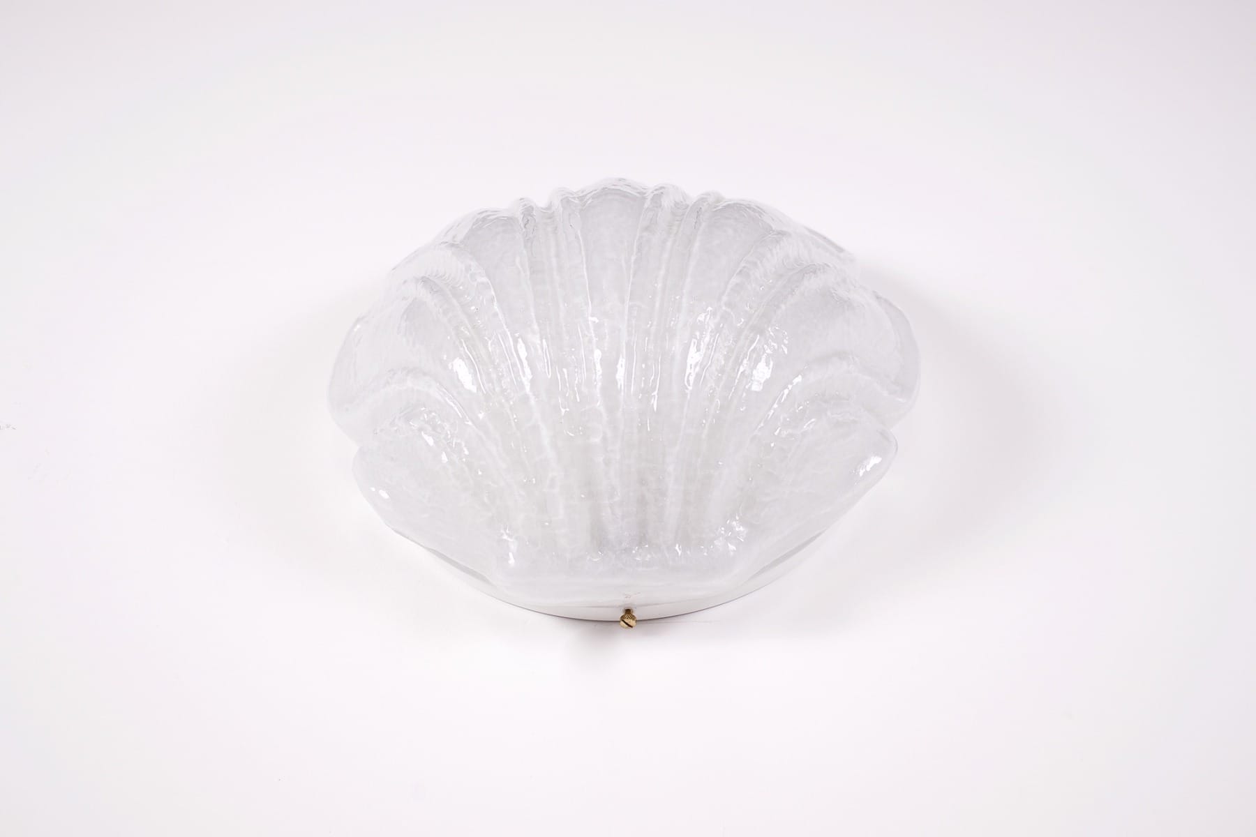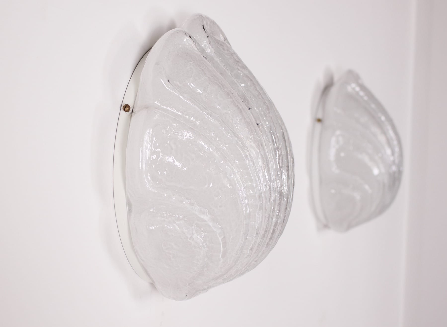 - Paire d’appliques en verre de Murano, épais et translucide, moulée en coquillage. Dans le goût de Barovier & Toso. Edition des années 1970.