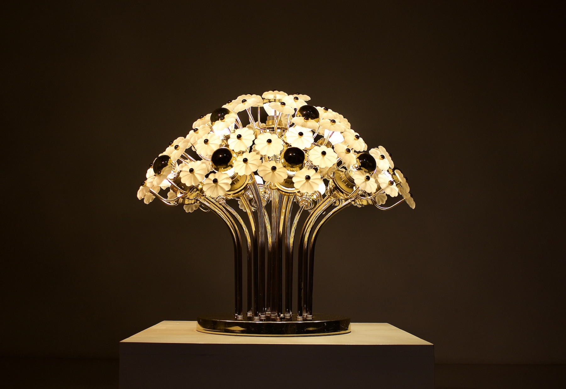 La structure portant les fleurs est équipée de 3 douilles pour ampoules E14.