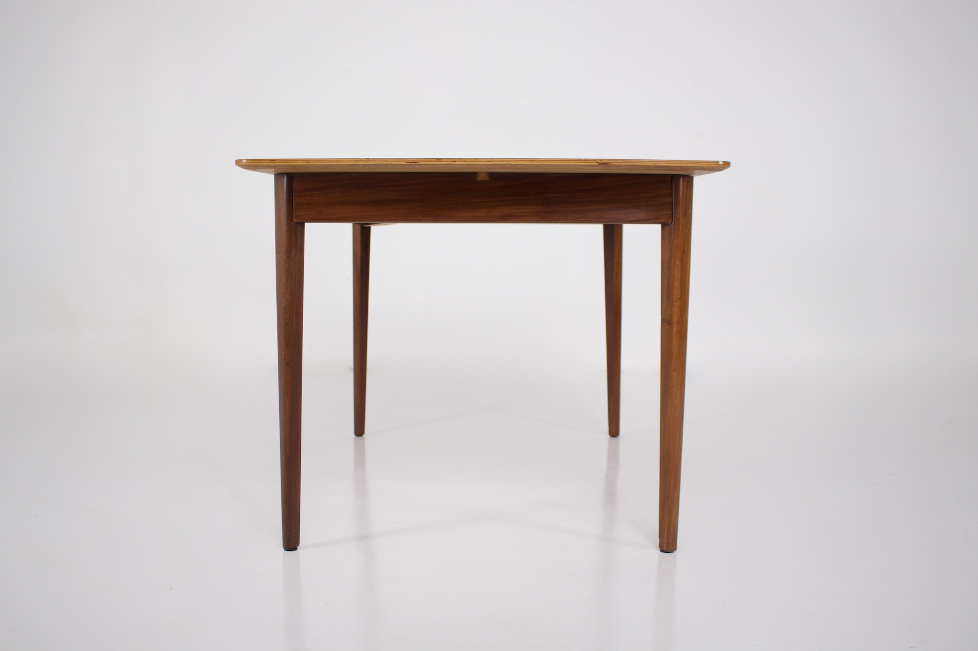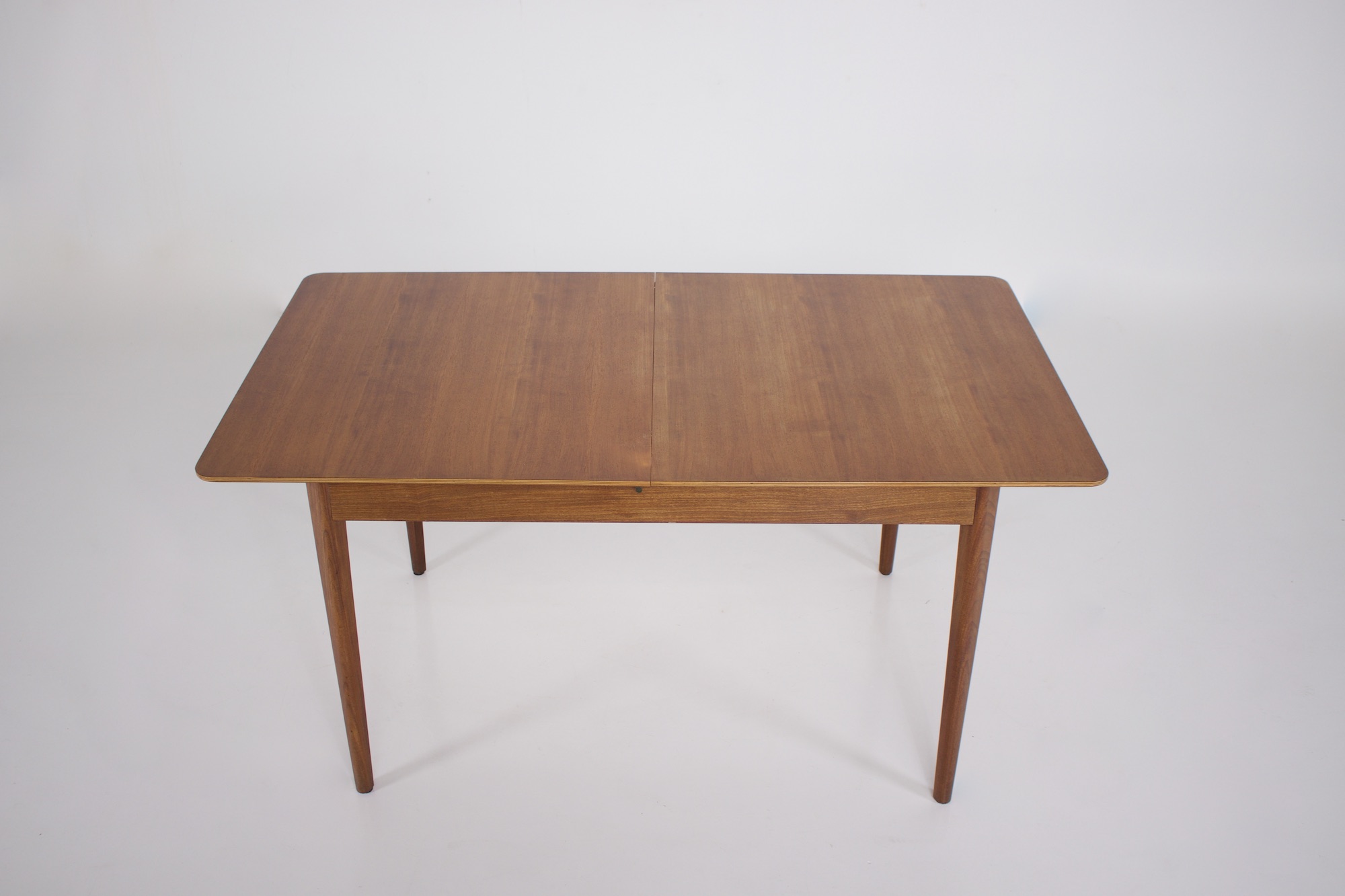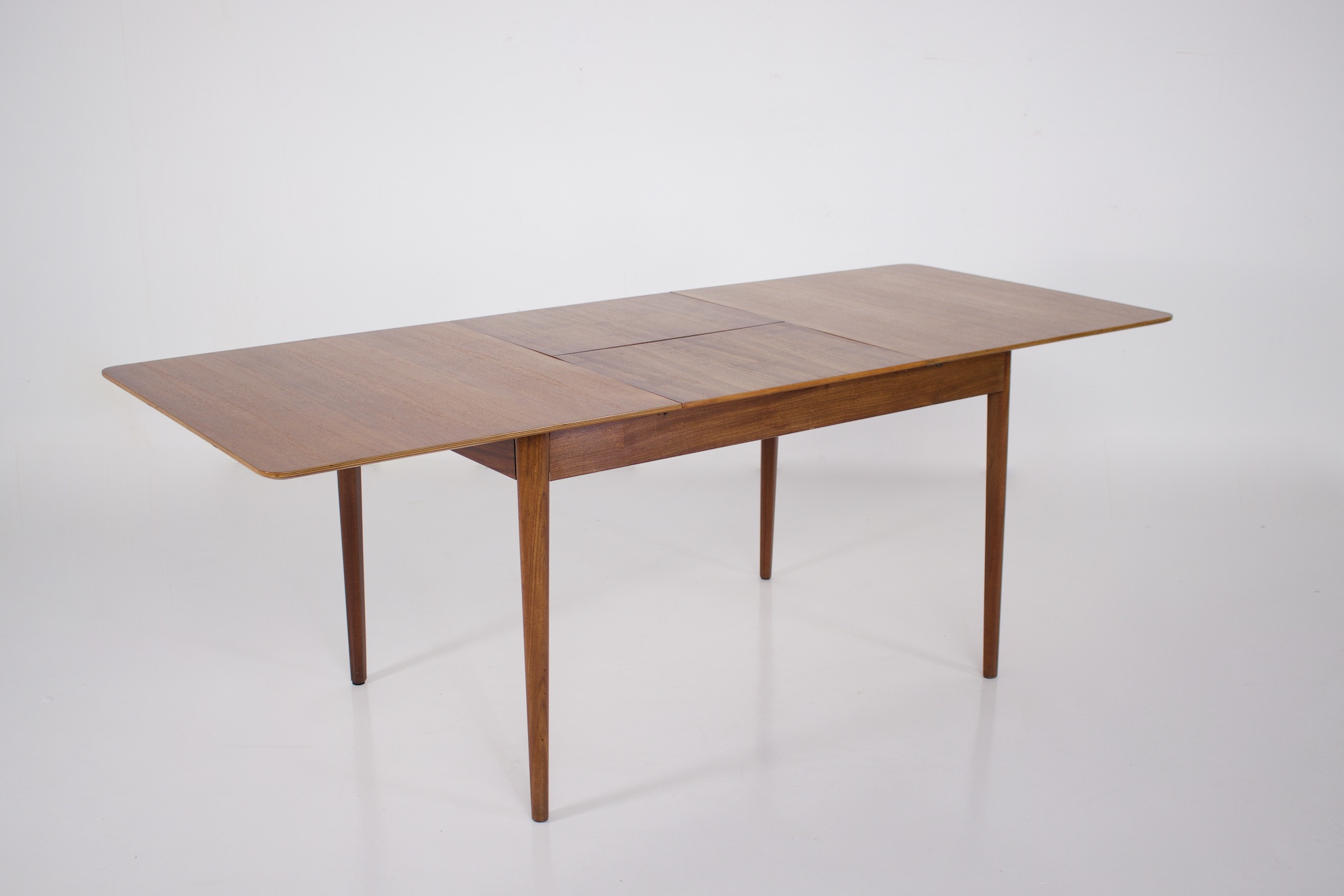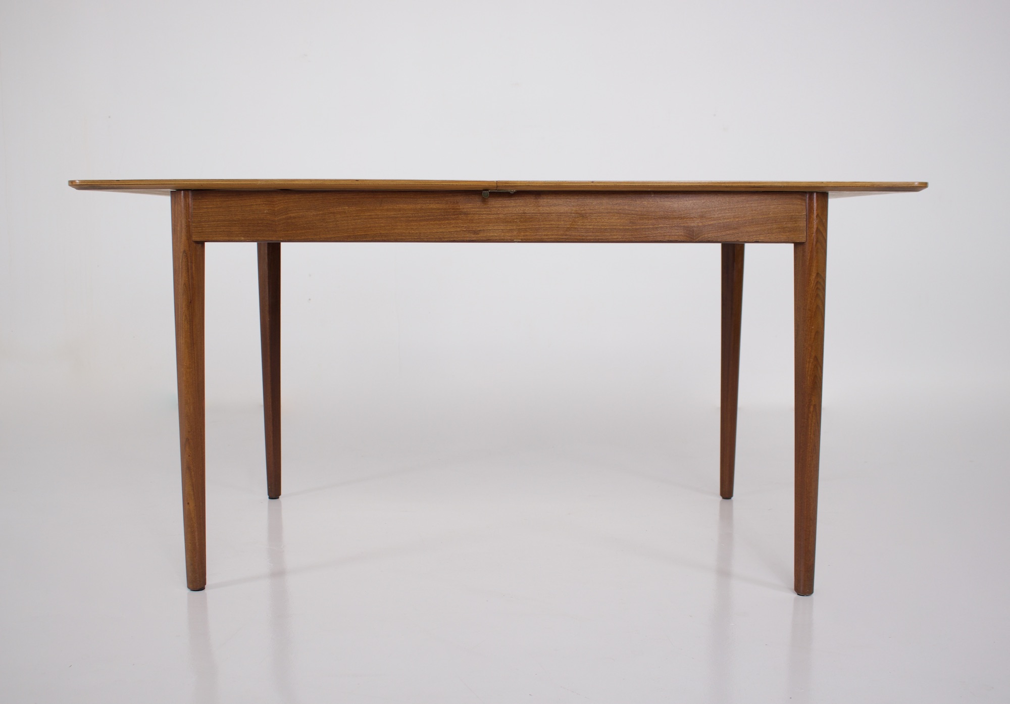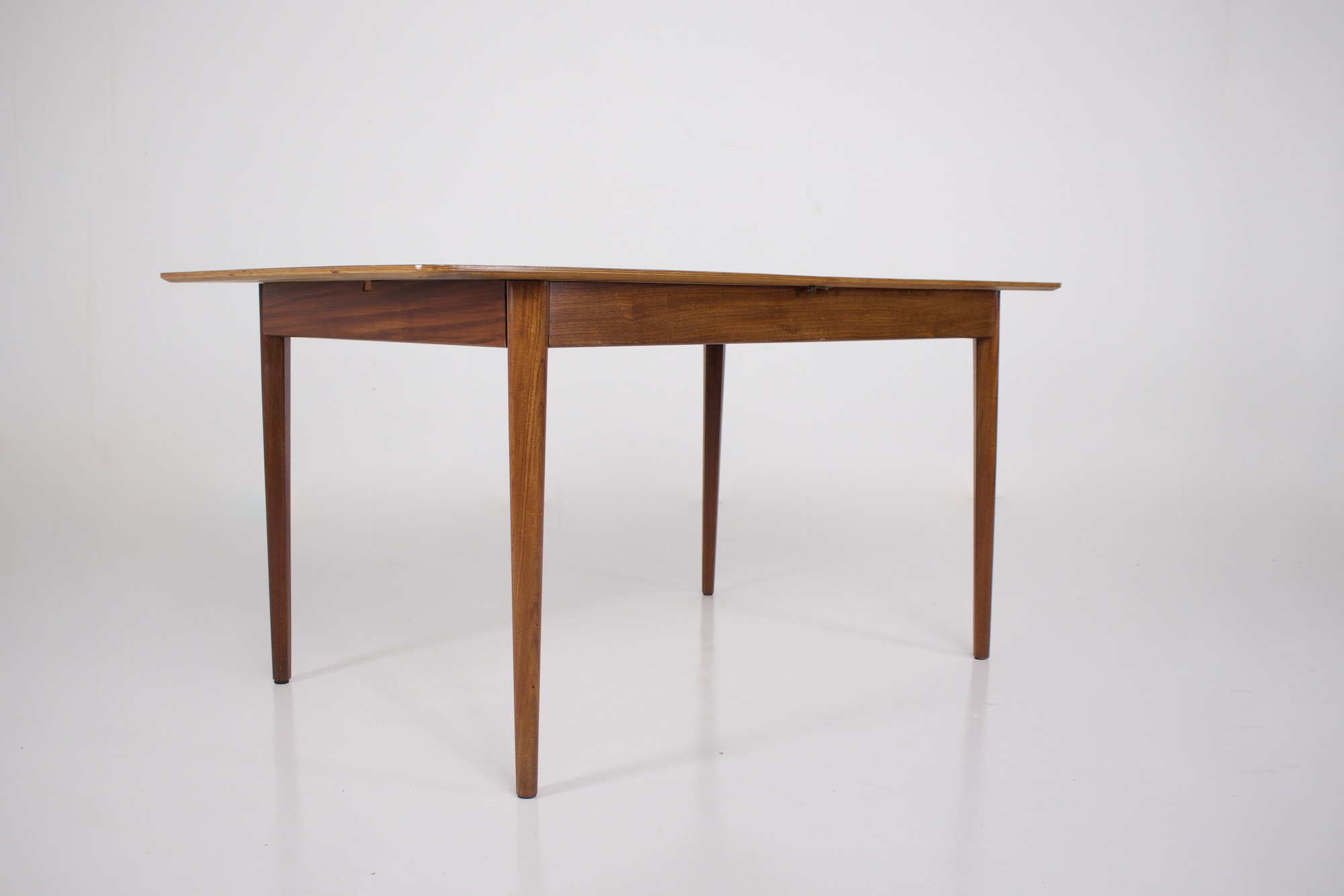 - Pastoe ou Nesto éditeur, table rectangulaire à allonge centrale escamotable, en teck, vers 1960.